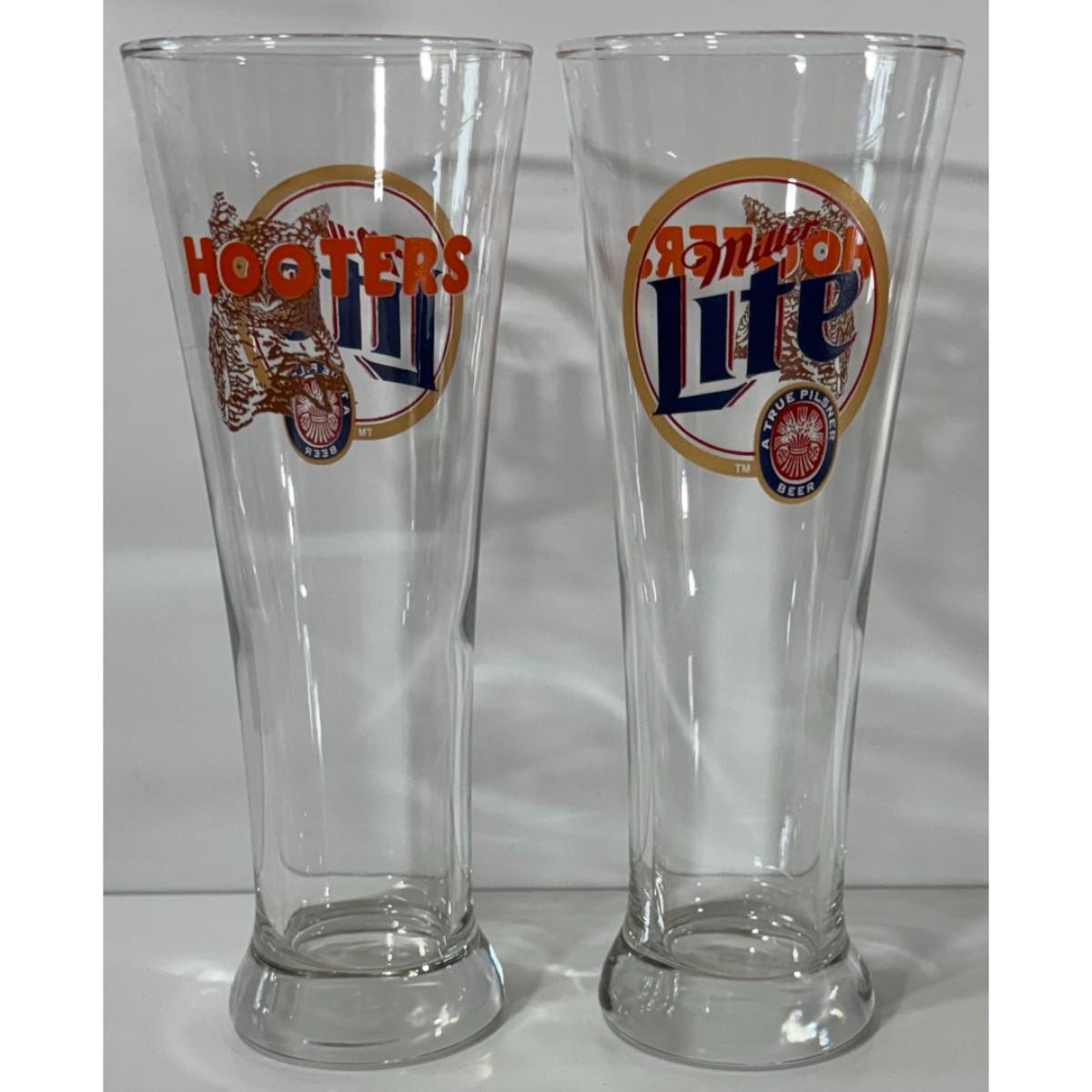 2 Vintage Miller Lite A True Pilsner Hooters Beer Glasses