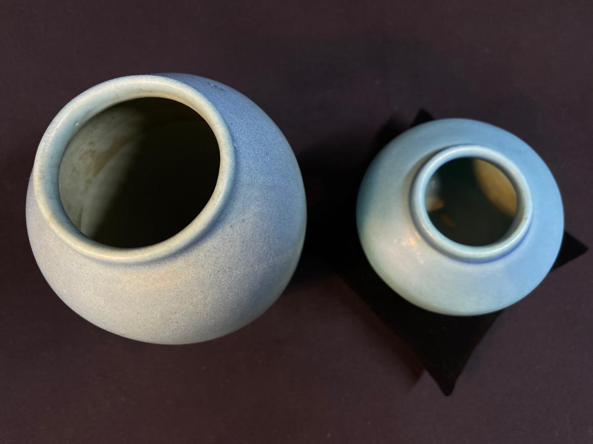2 Vintage Ming Blue Van Briggle vases Tall, Short