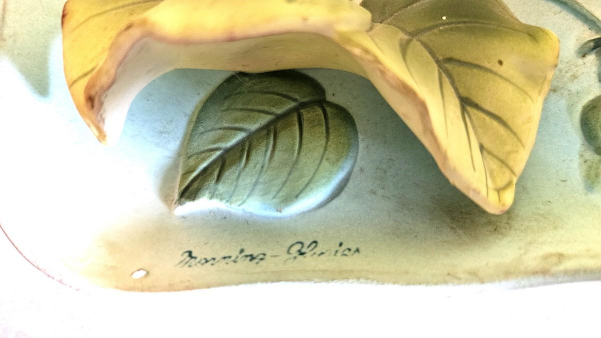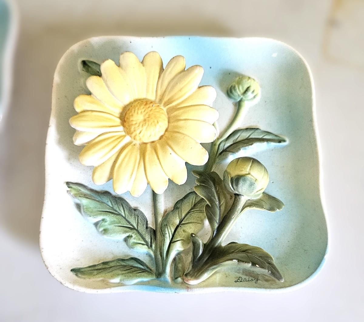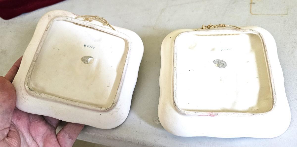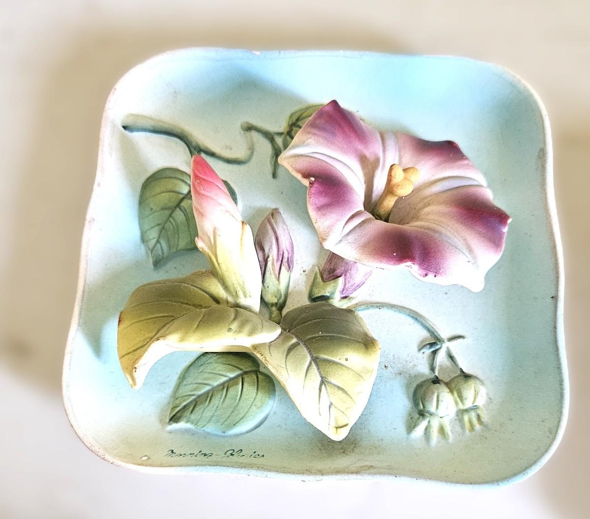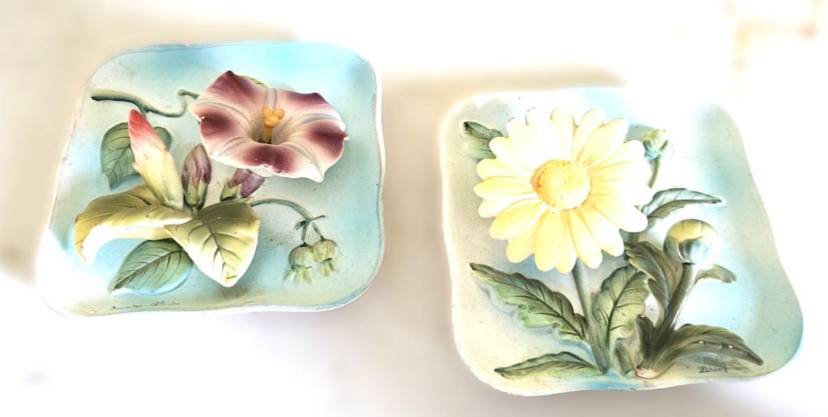 2 Vintage Napco 5” Square Morning Glories 3D Flowers Wall Plates