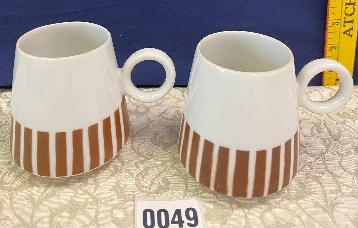2 Vintage Nasco Brown Stripes Retro Coffee Cups