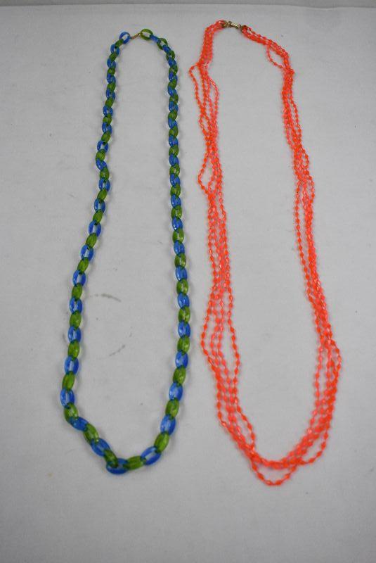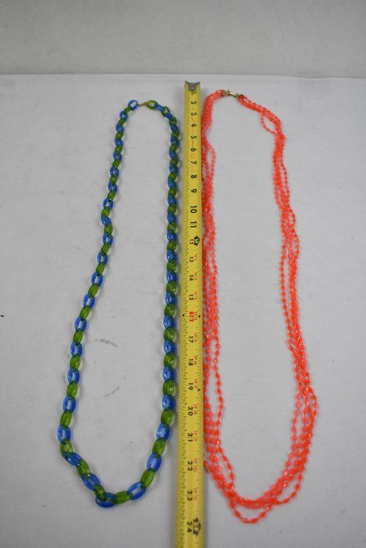 2 Vintage Necklaces: Blue/Green Linked and Coral - Both Plastic