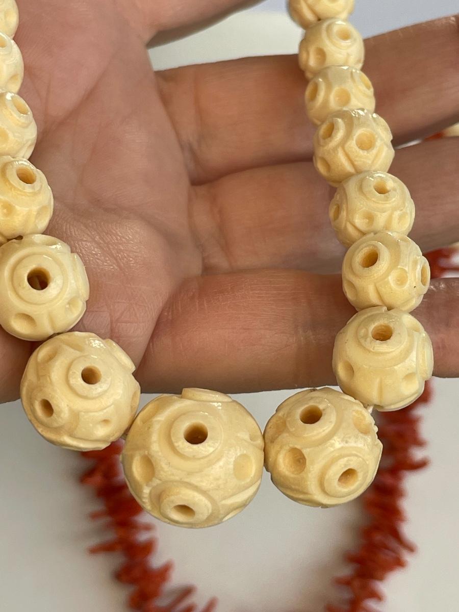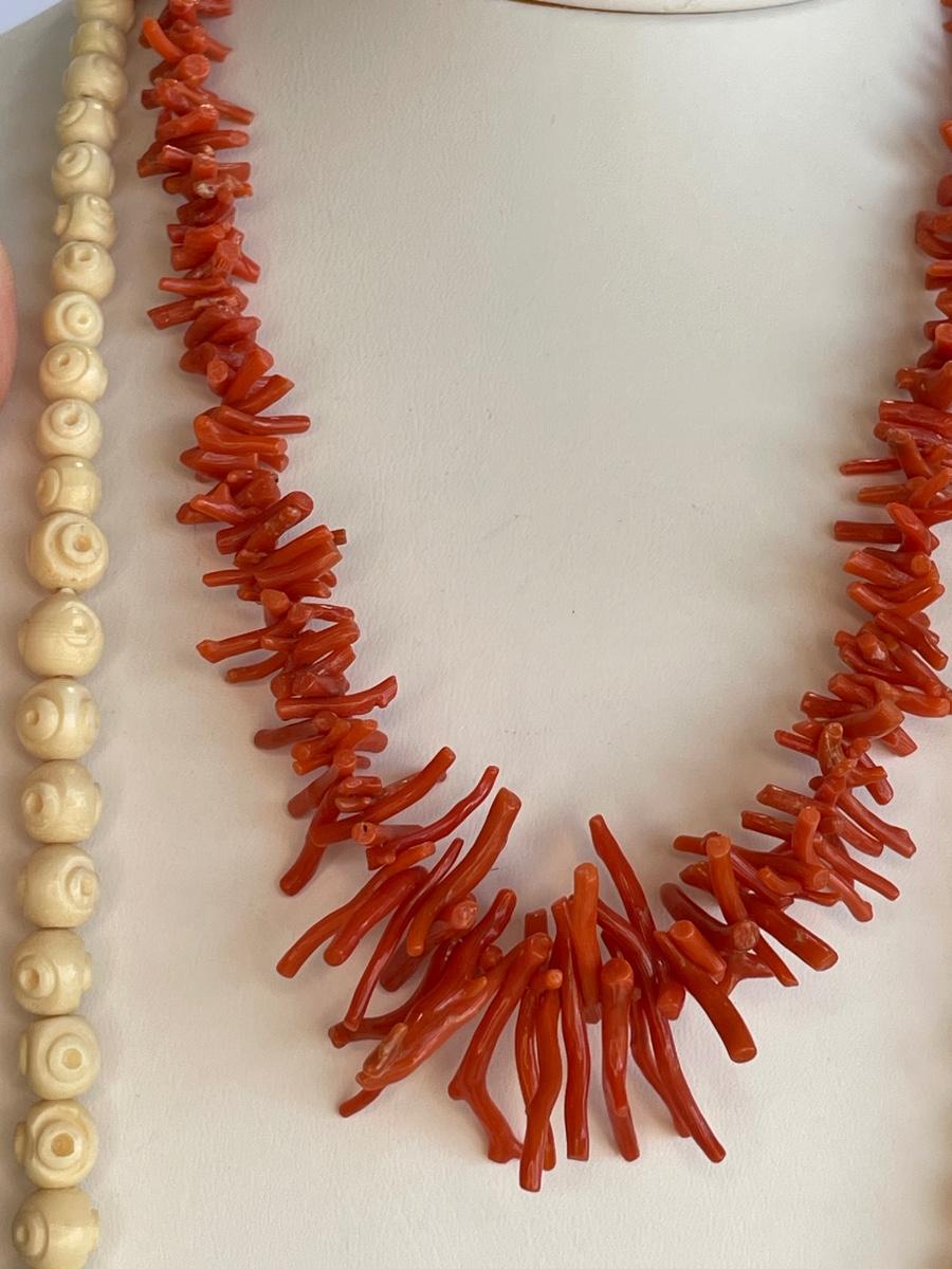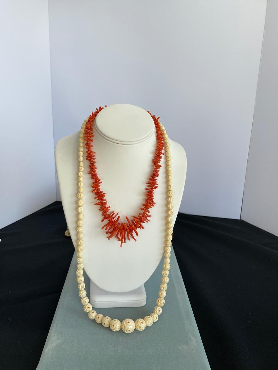 The 30 inch long one is carved, possibly bone. Branch coral is 18 inches.