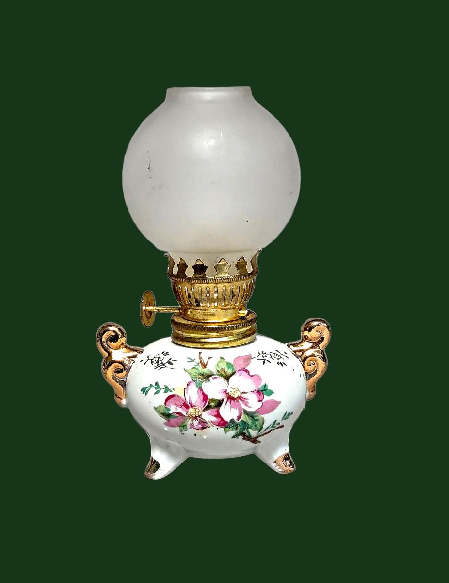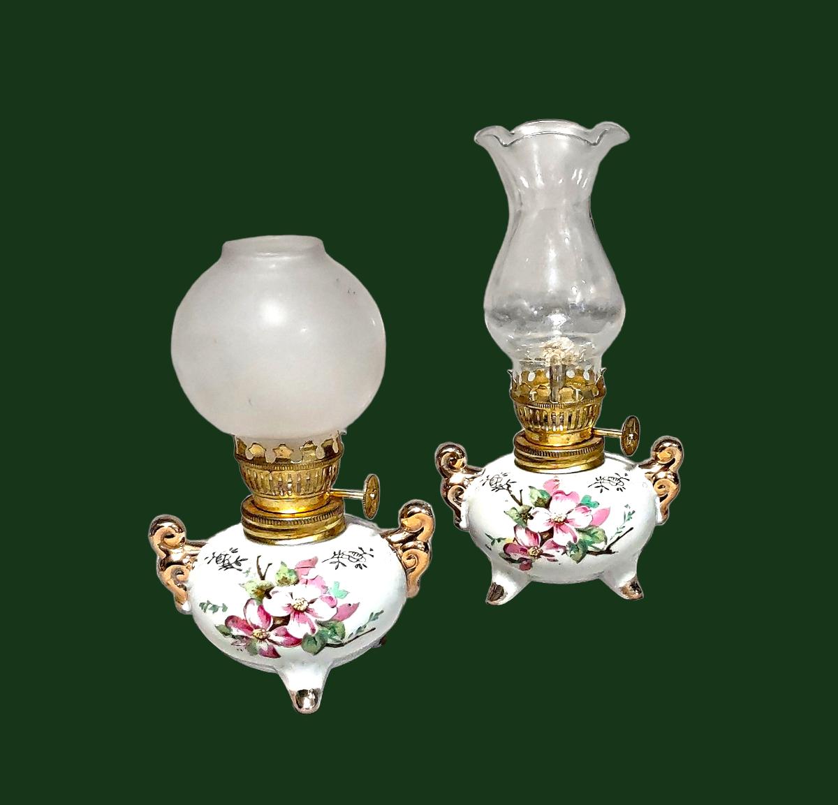 2 Vintage Norcrest Japan Ivory Porcelain Miniature Finger Oil Lamps