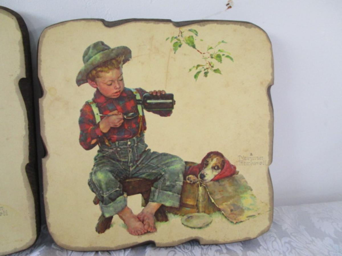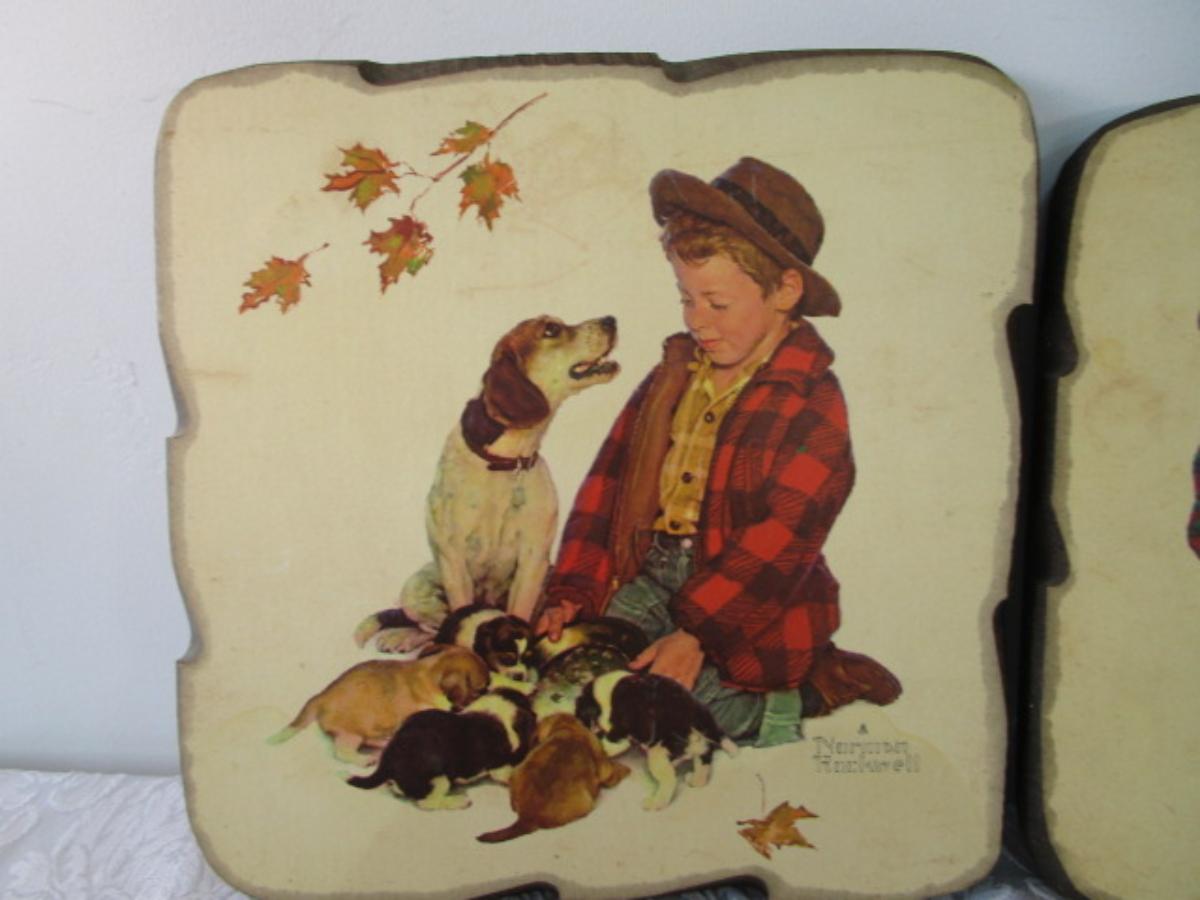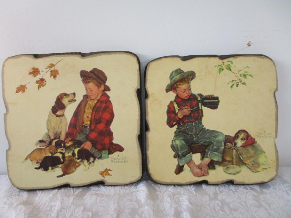 2 Vintage Norman Rockwell plaques with boys & dogs