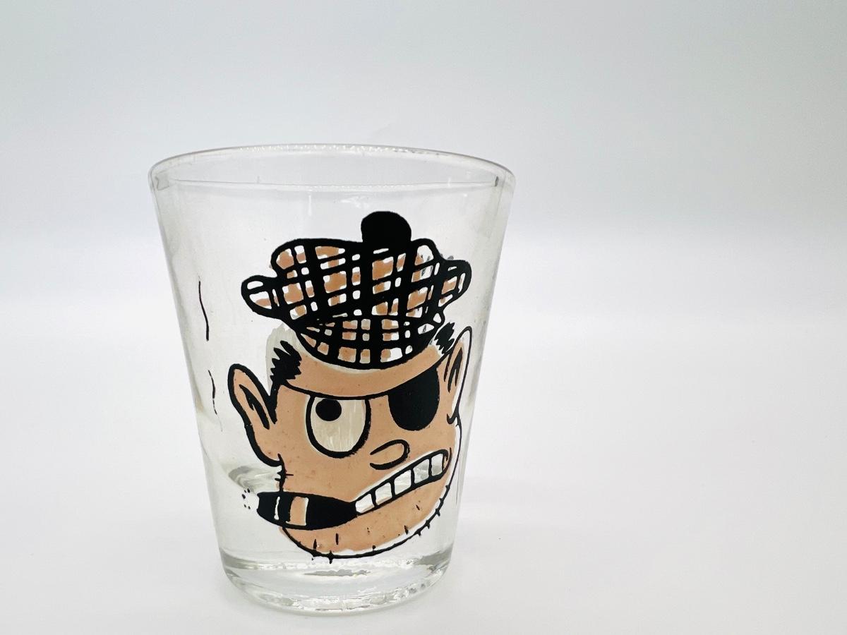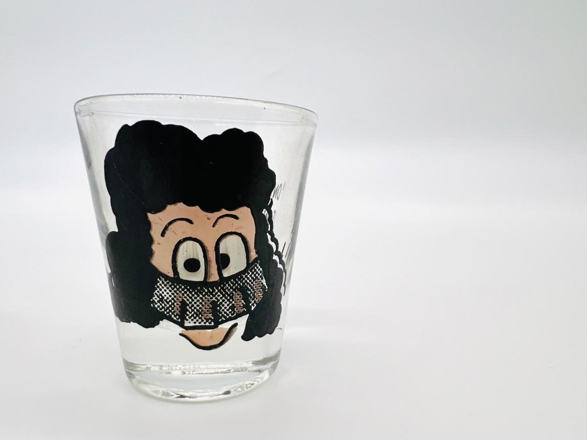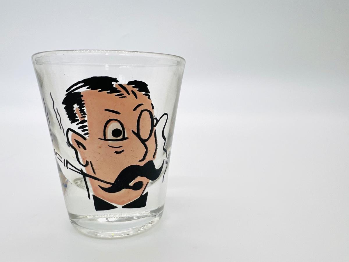 Four Vintage Novelty Moving Roving Eye Shot Glasses. “ONE IS MY LIMIT” “DOWN DA HATCH” “S-SDELIGHTFUL” “I SAY JOLLY WHAT”