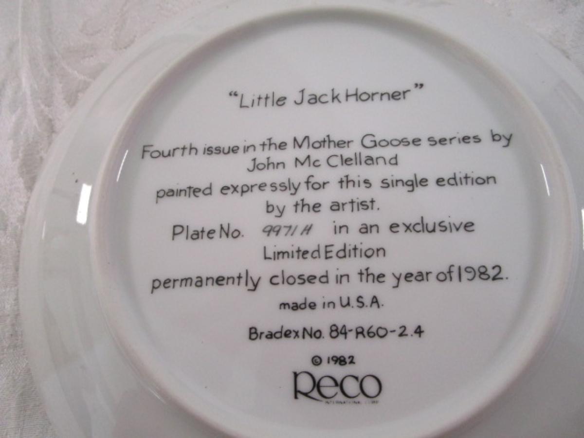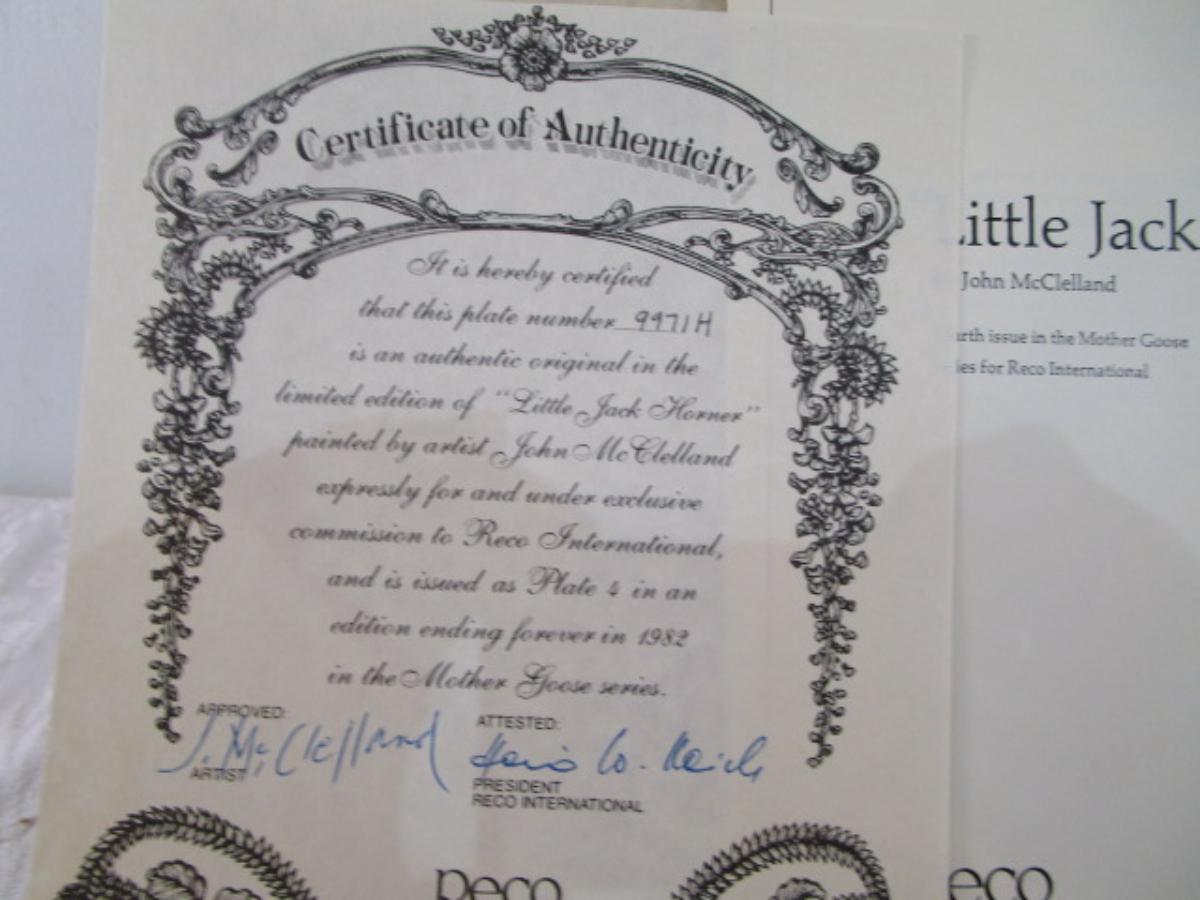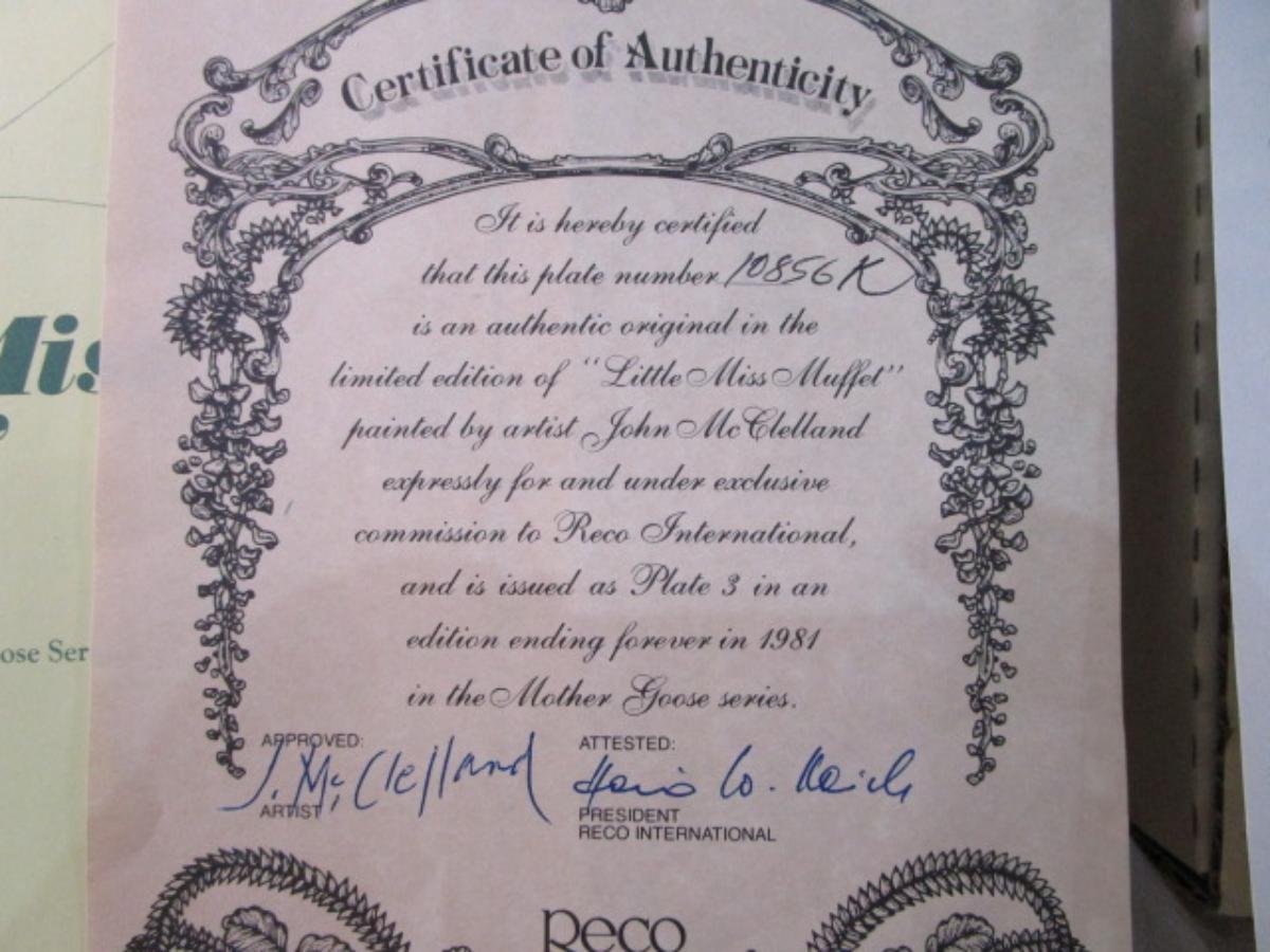 "Little Jack Horner", "Little Miss Muffet", 8-1/2" in diameter includes certificates
