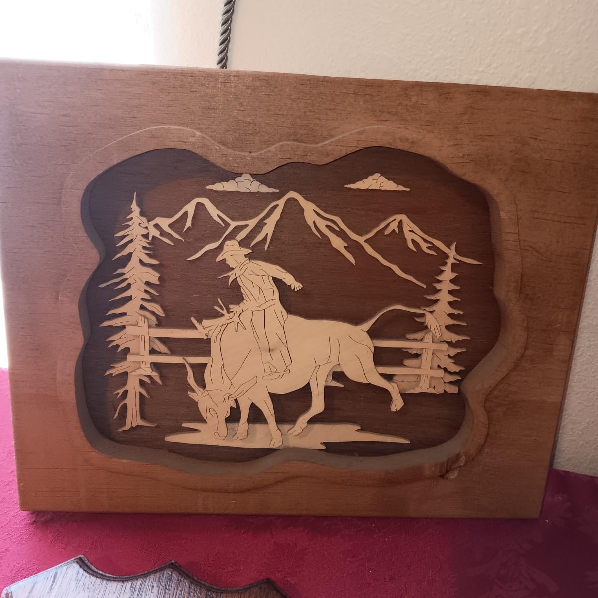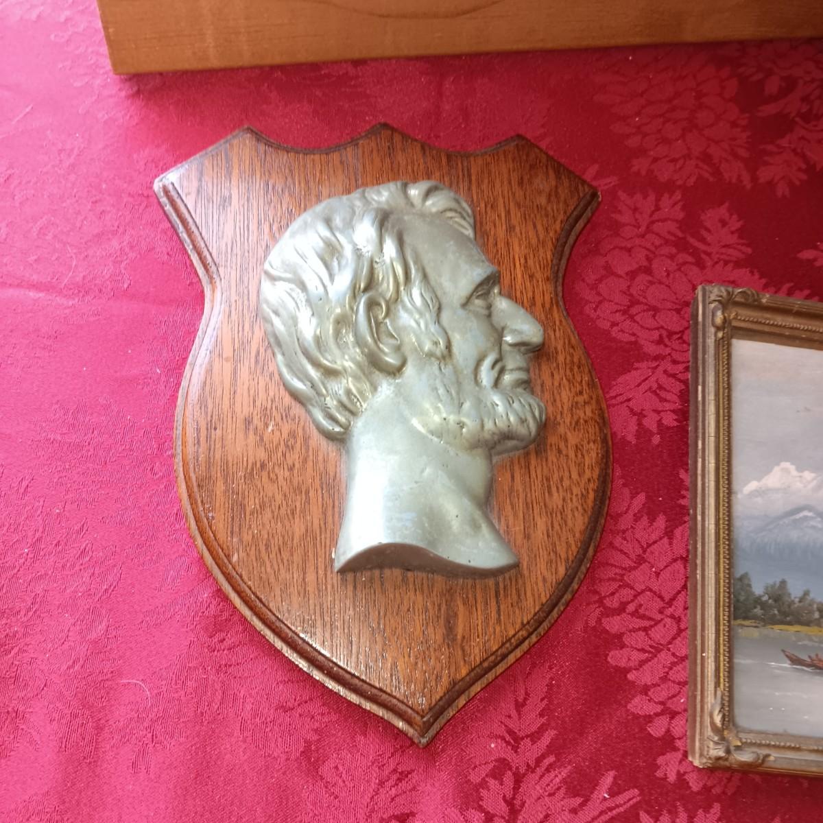 2 VINTAGE OIL ON CANVAS PAINTINGS, 3D WESTERN THEMED AND ABE LINCOLN