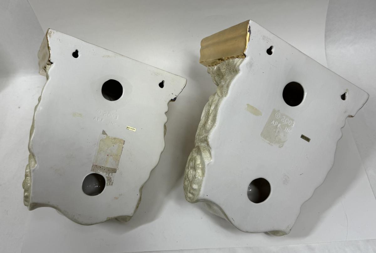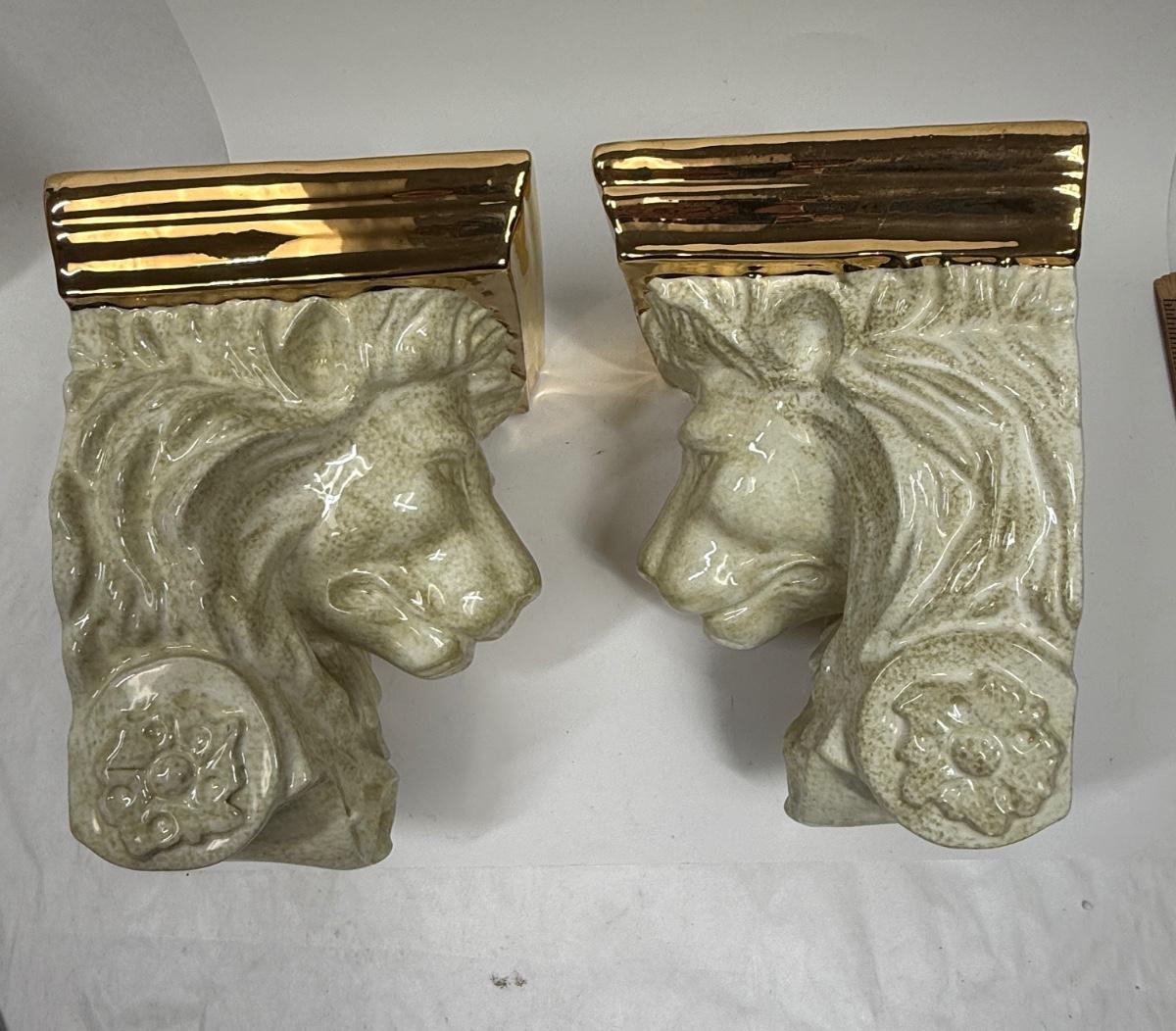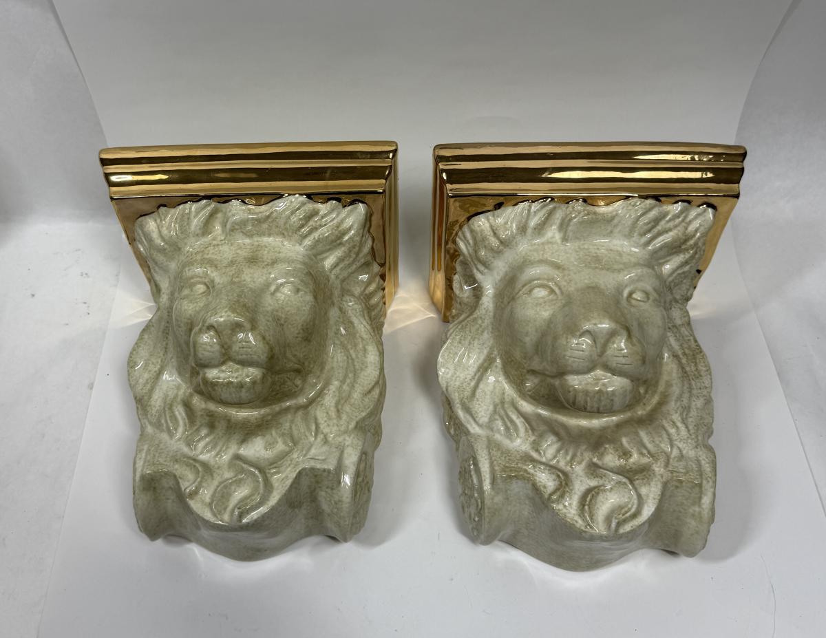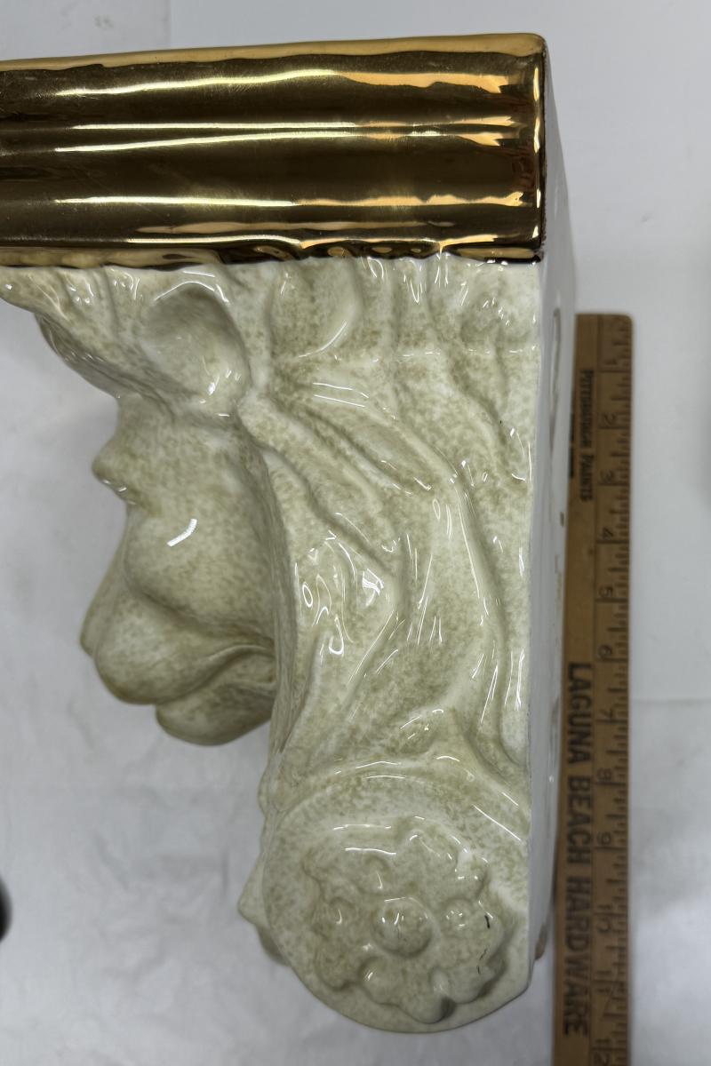 2 Vintage Painted Gold Plaster Lion Head Wall Decor Shelf