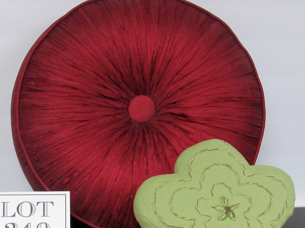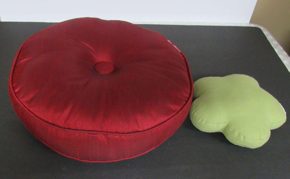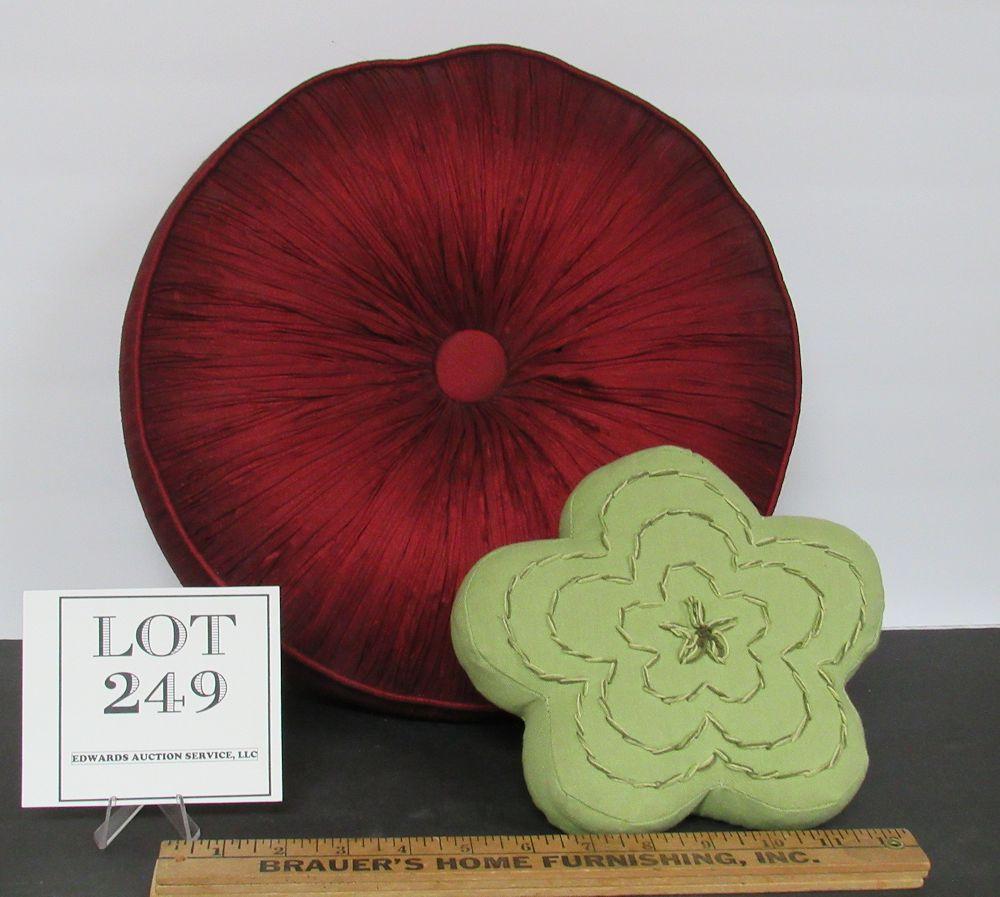 2 Vintage Pillows, Maroon Round and Flower Shaped