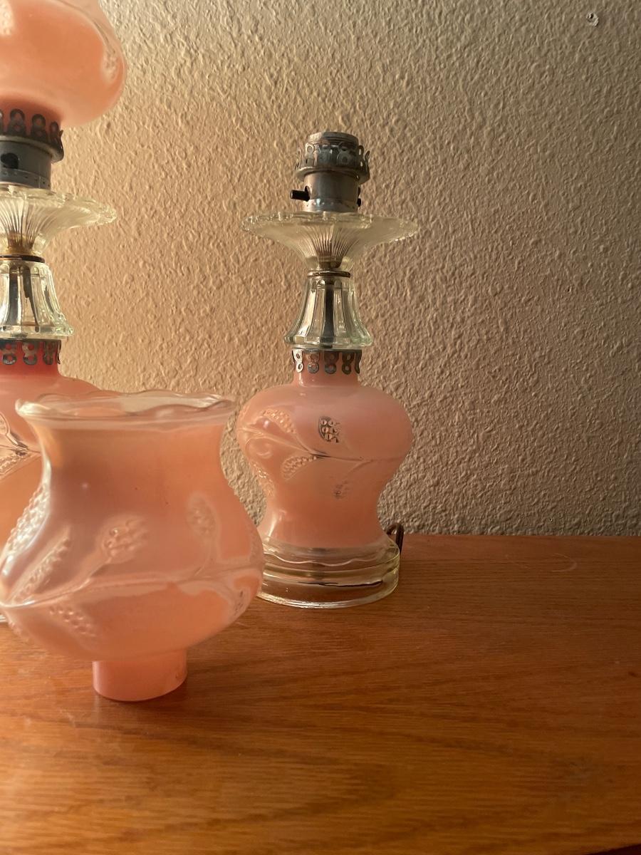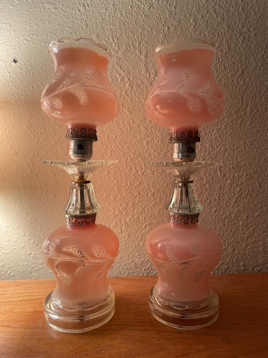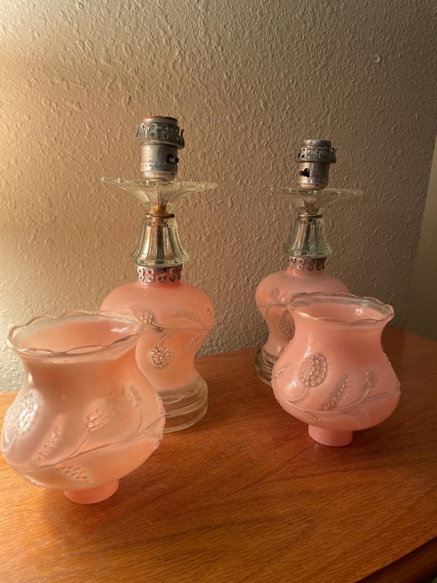 2 vintage pink colored lamps