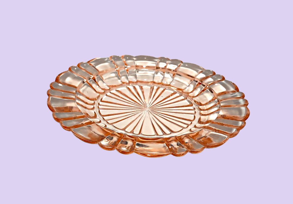 2 Vintage Pink Depression Glass Saucers