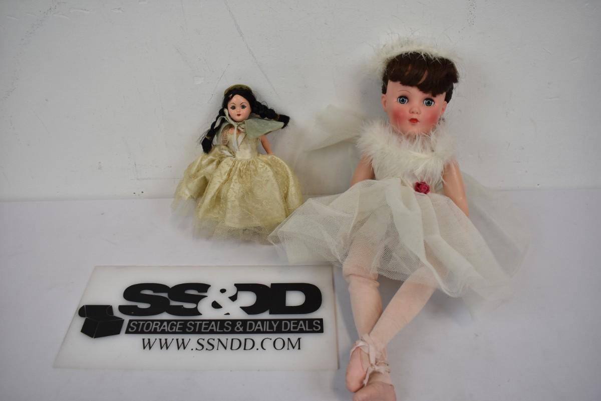 2 Vintage Plastic Dolls. Black Hair Blue Eyes. Ballerina Brunette Green eyes