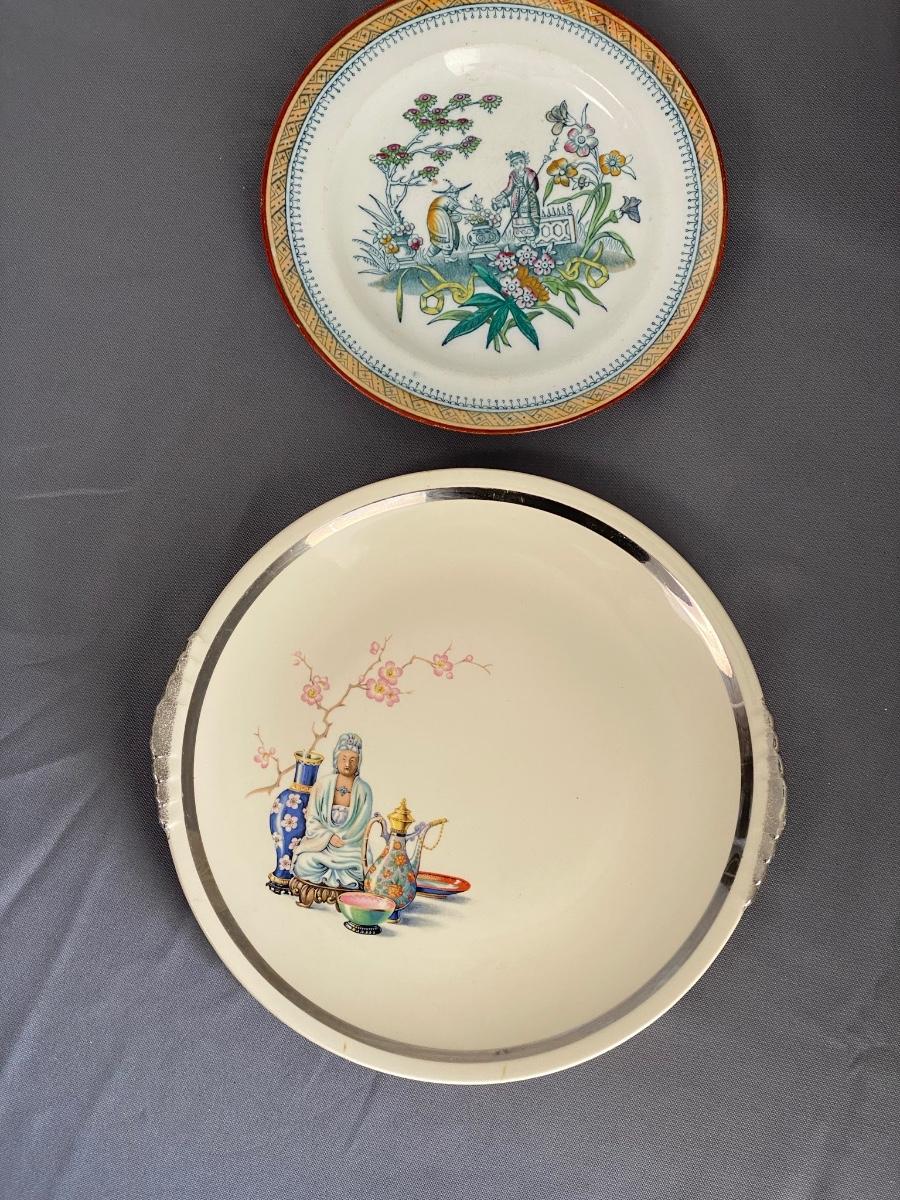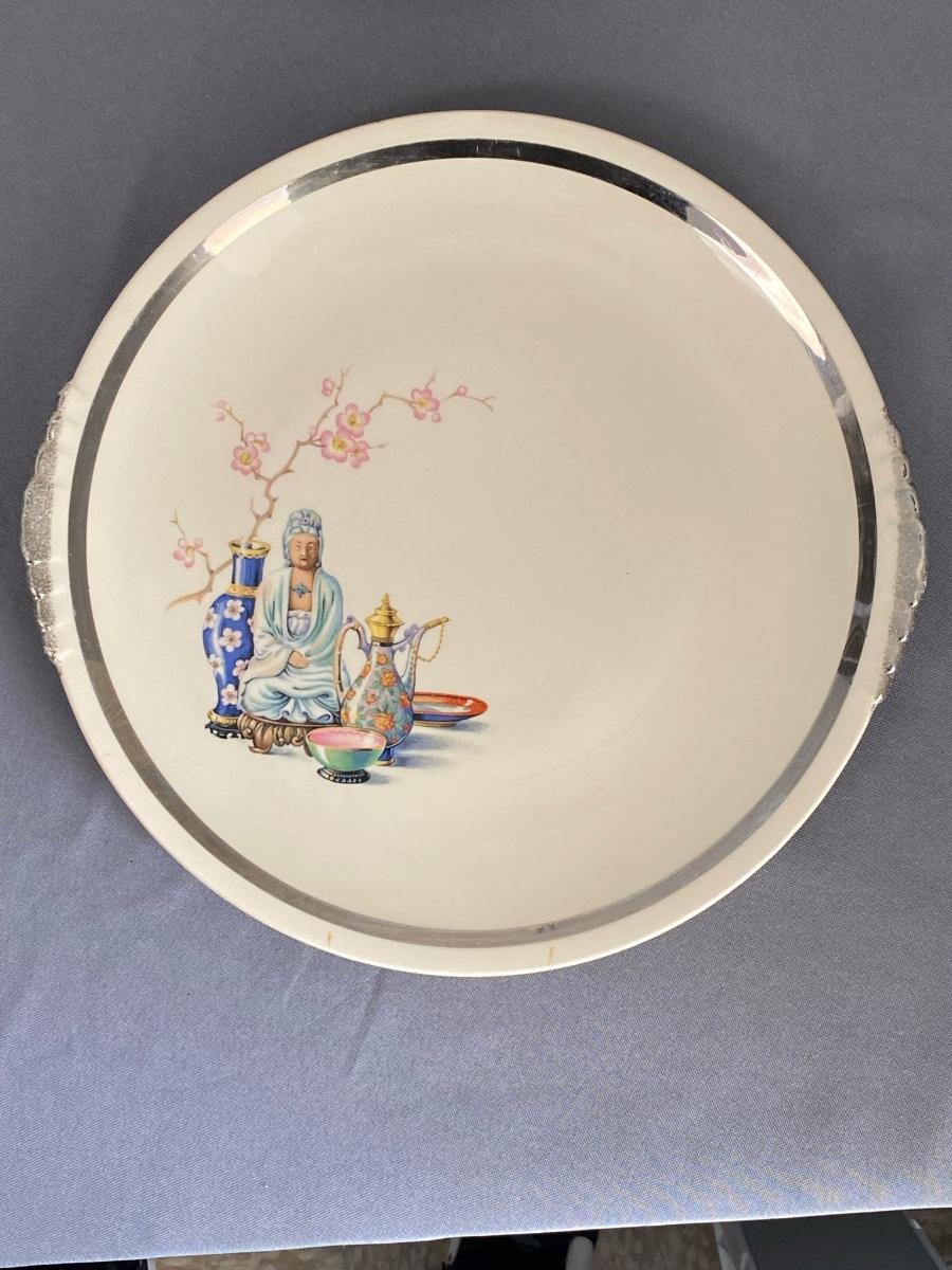 Paden City Pottery Buddha Oriental Cherry Blossom Ceramic Plate, 10.5", and