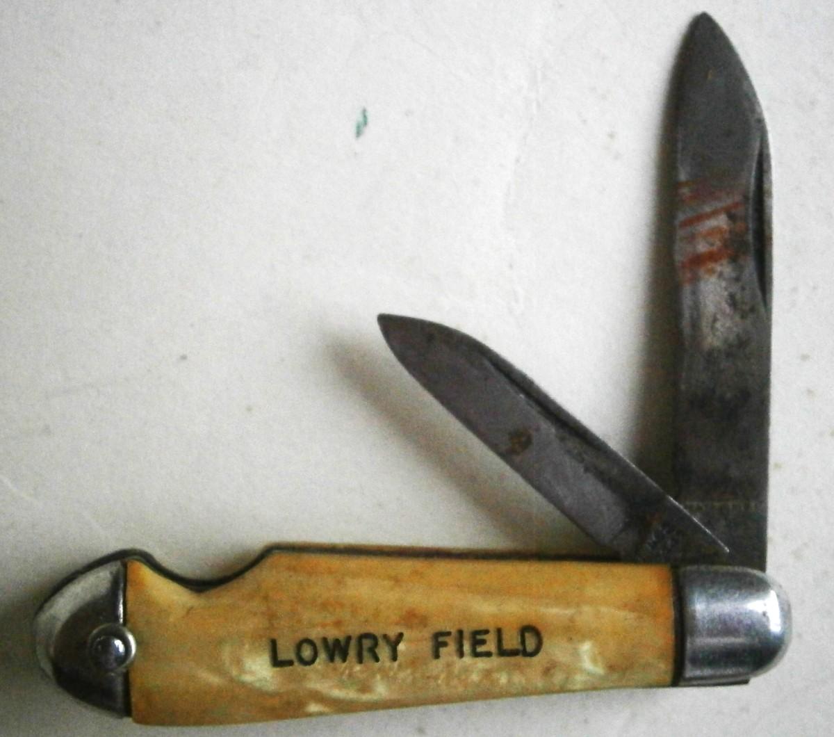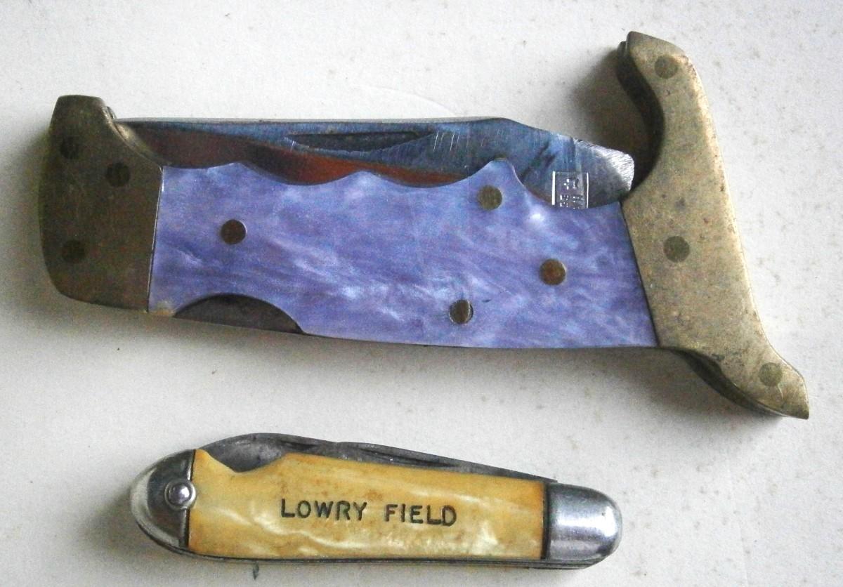 2 Vintage Pocket Knives, a lockback single blade knife made in Pakistan together with a patented "LOWRY FIELD" pocket knife.