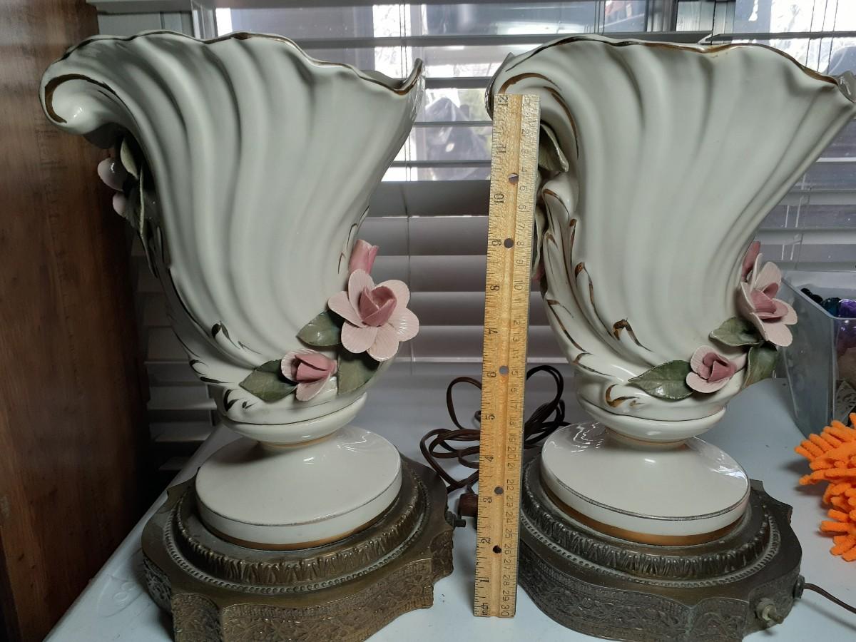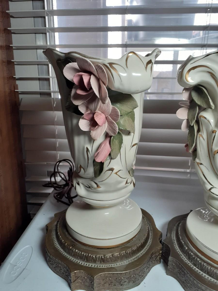 2 Vintage porcelan and brass elec. LAMPS