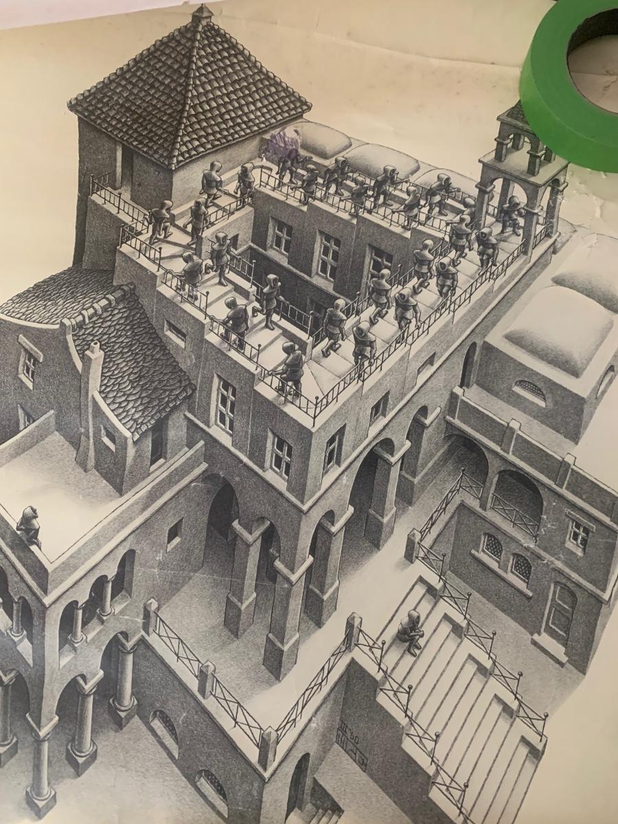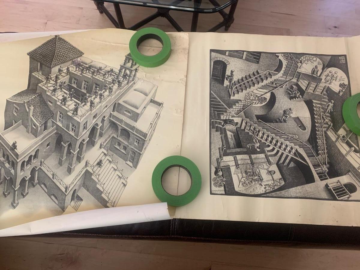 2 Vintage 1970s Posters by M.C. Escher Relativity Ascending Decending