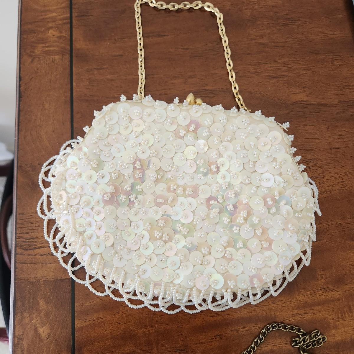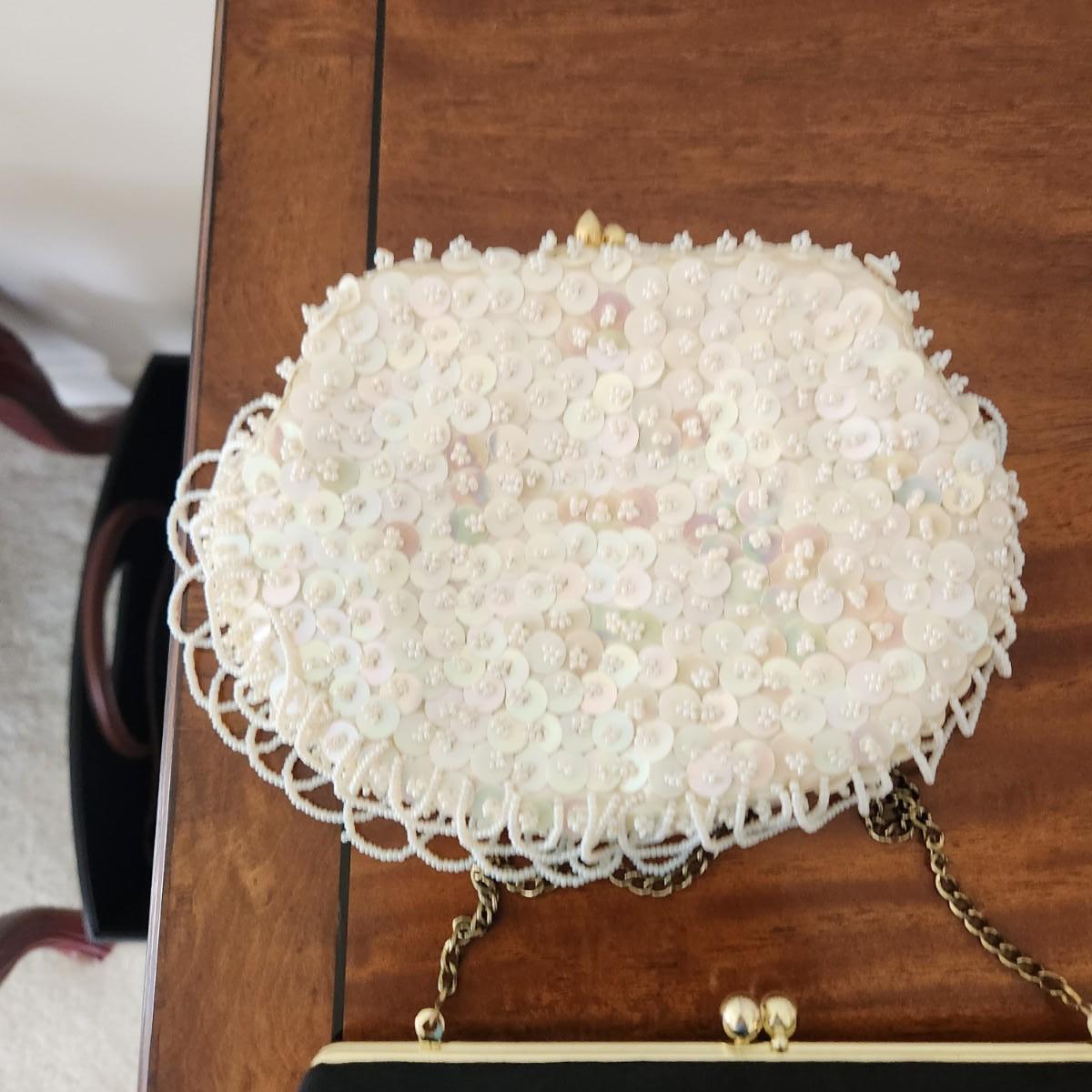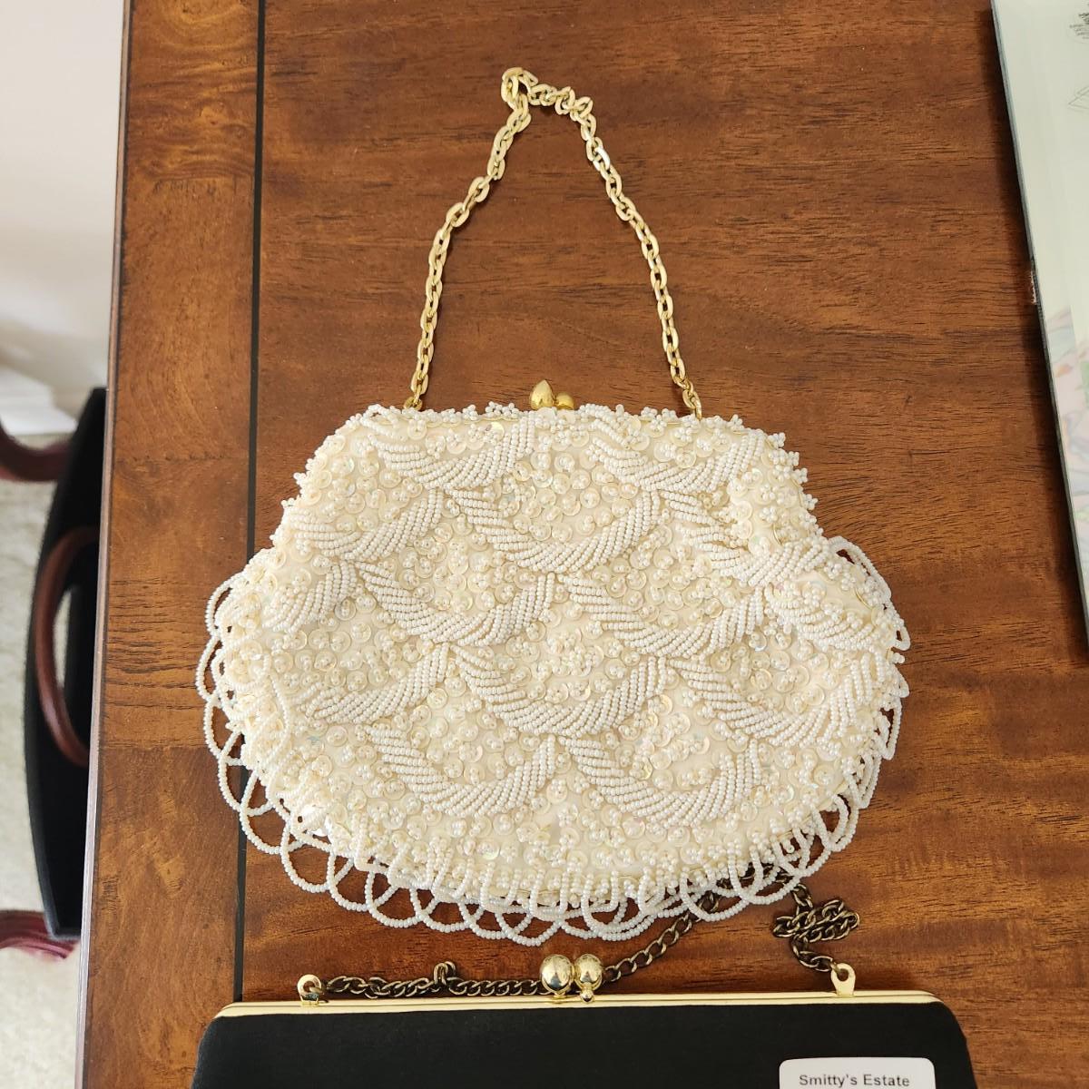 2 Vintage Purses Clutches White Hand made Hong Kong