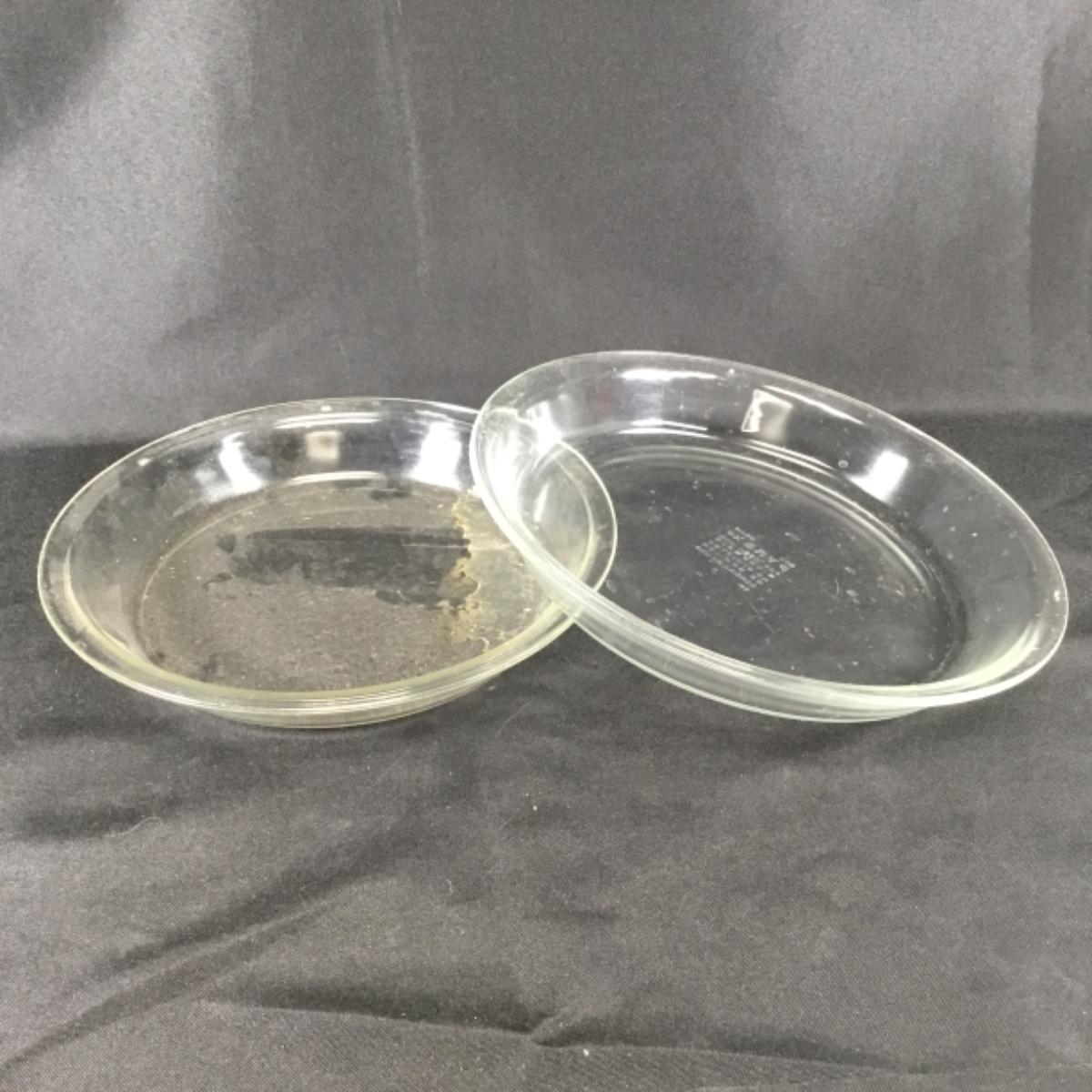 Both of these glass pie plates are in excellent condition. There are no chips, or cracks. See pictures.