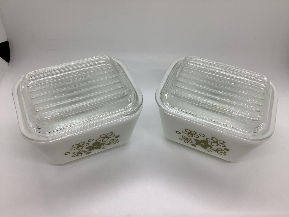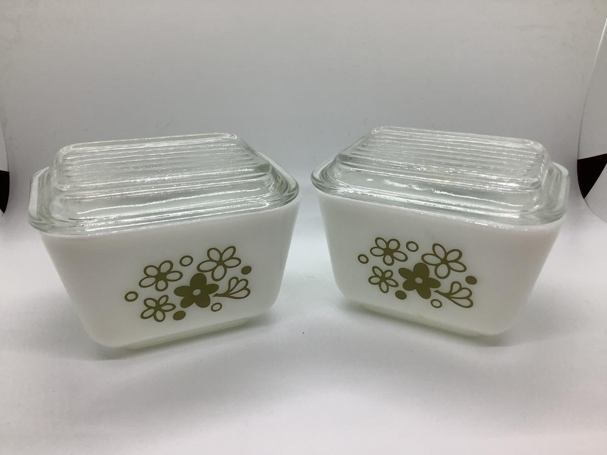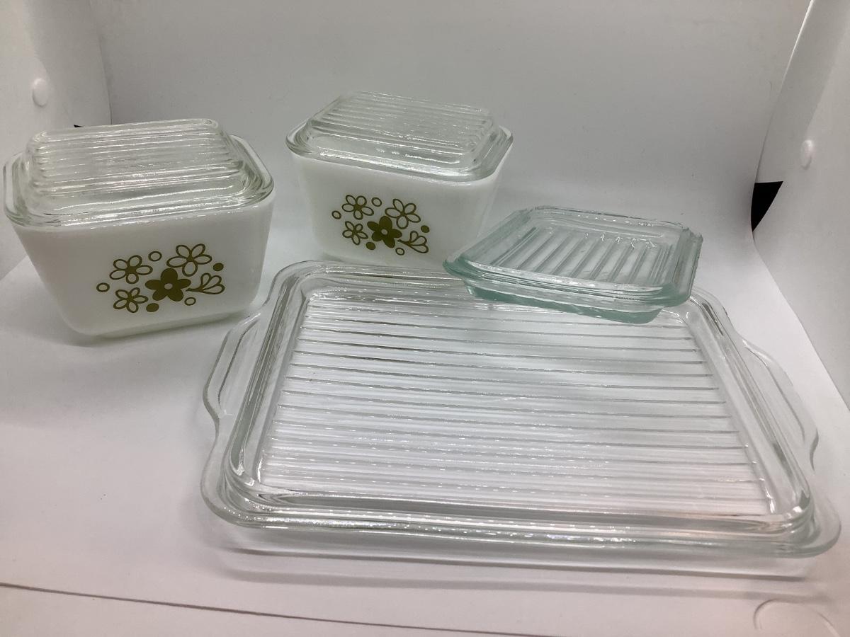 2 Vintage Pyrex Spring Blossom w/glass lids & 2 additional lids