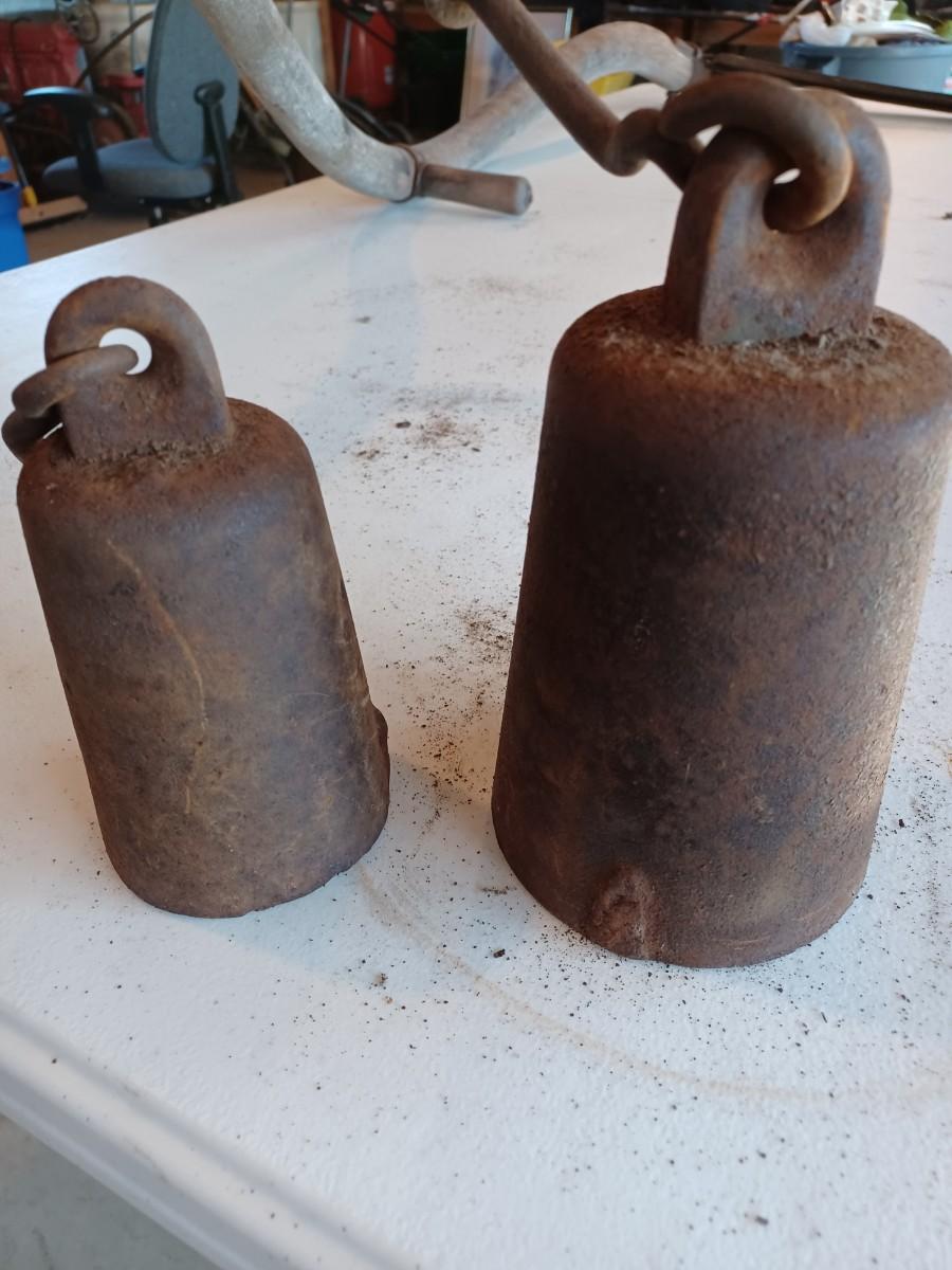 2 Vintage Rustic Hanging Balance Scale Weights