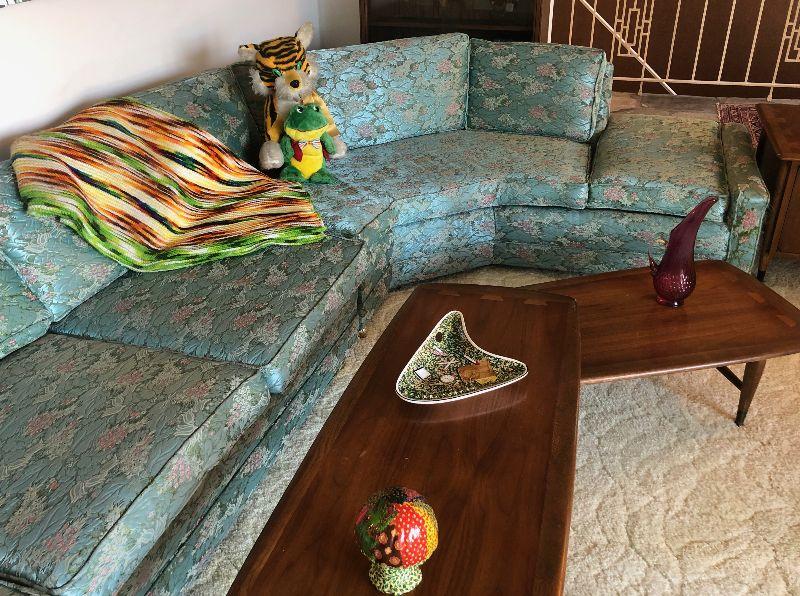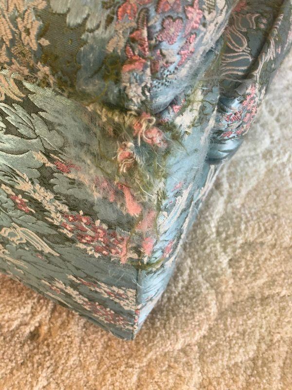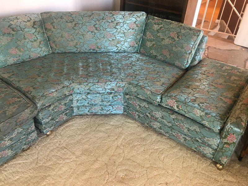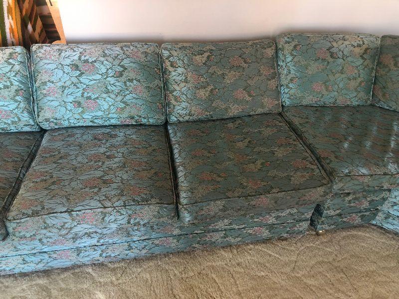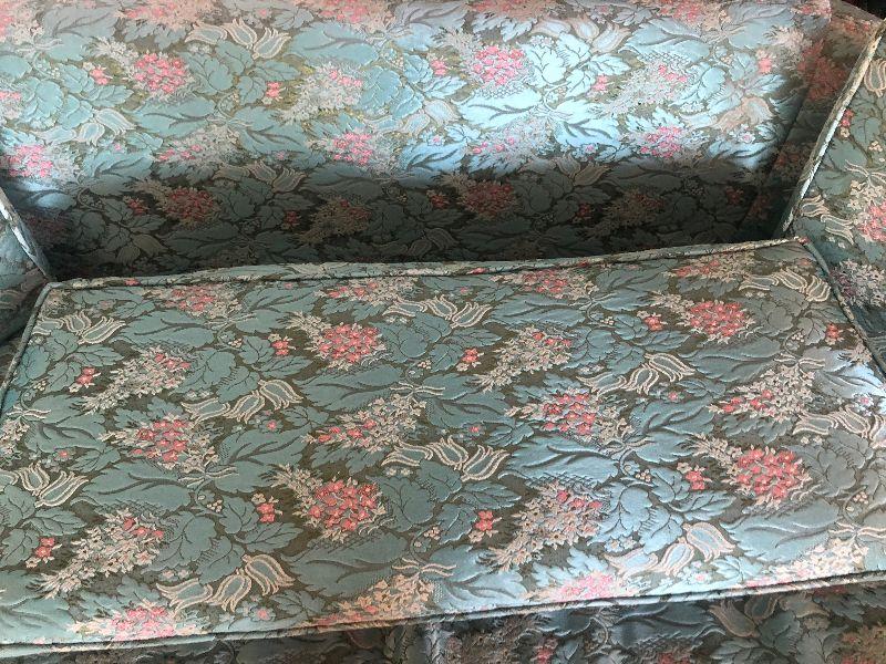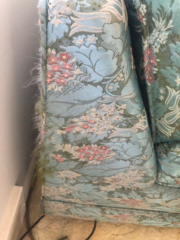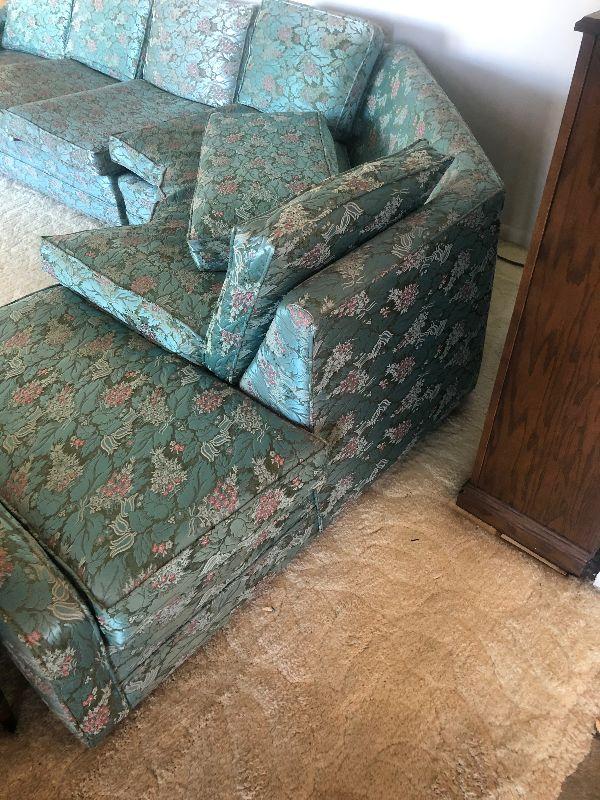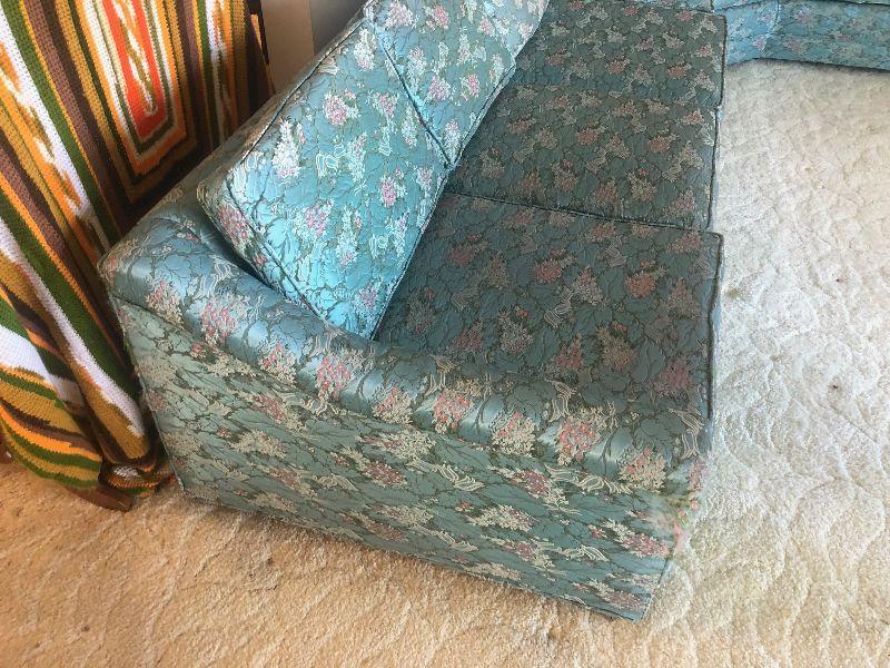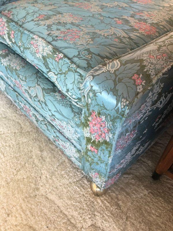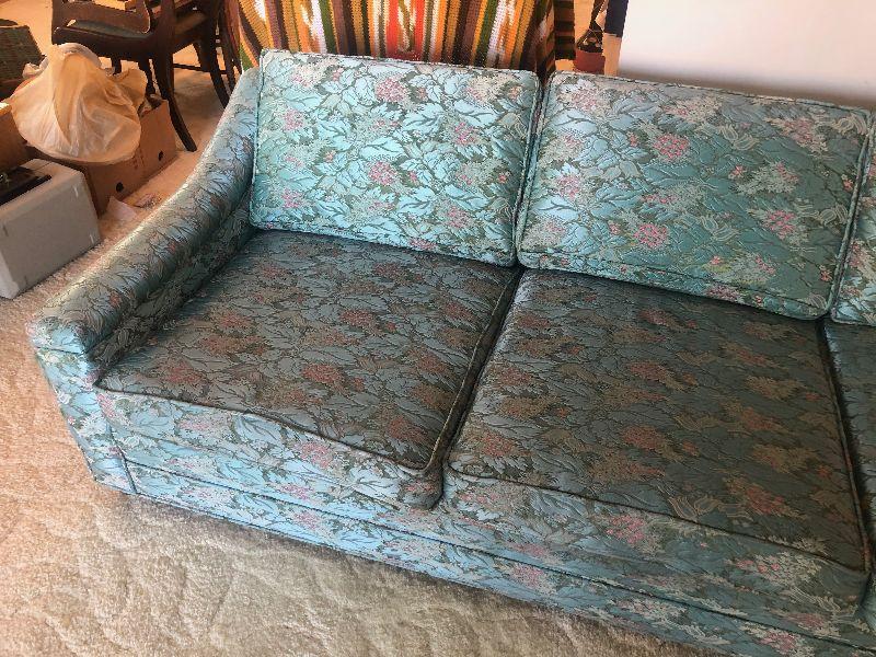 Turquoise / Pink Floral 136" by 81" 36" Deep This one is exceptional! Minor Arm Damage from the cat scratching otherwise no home