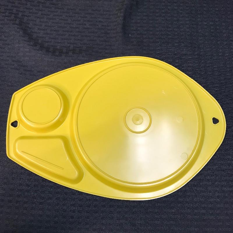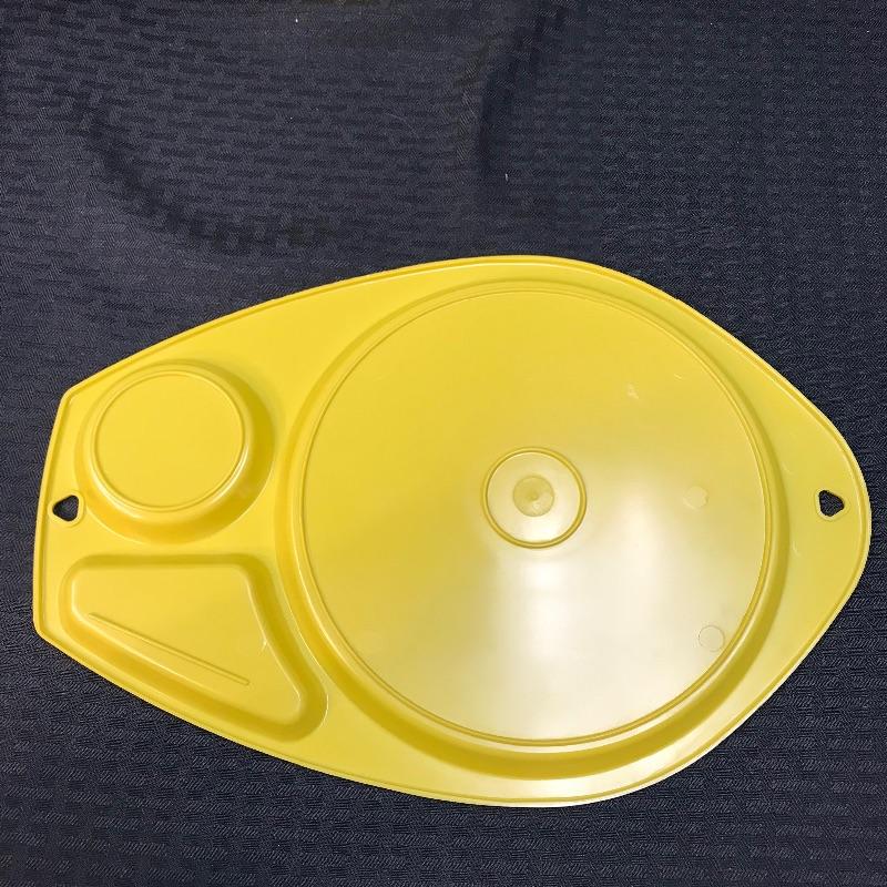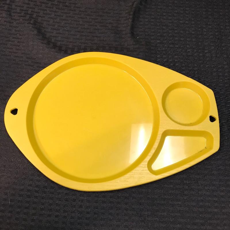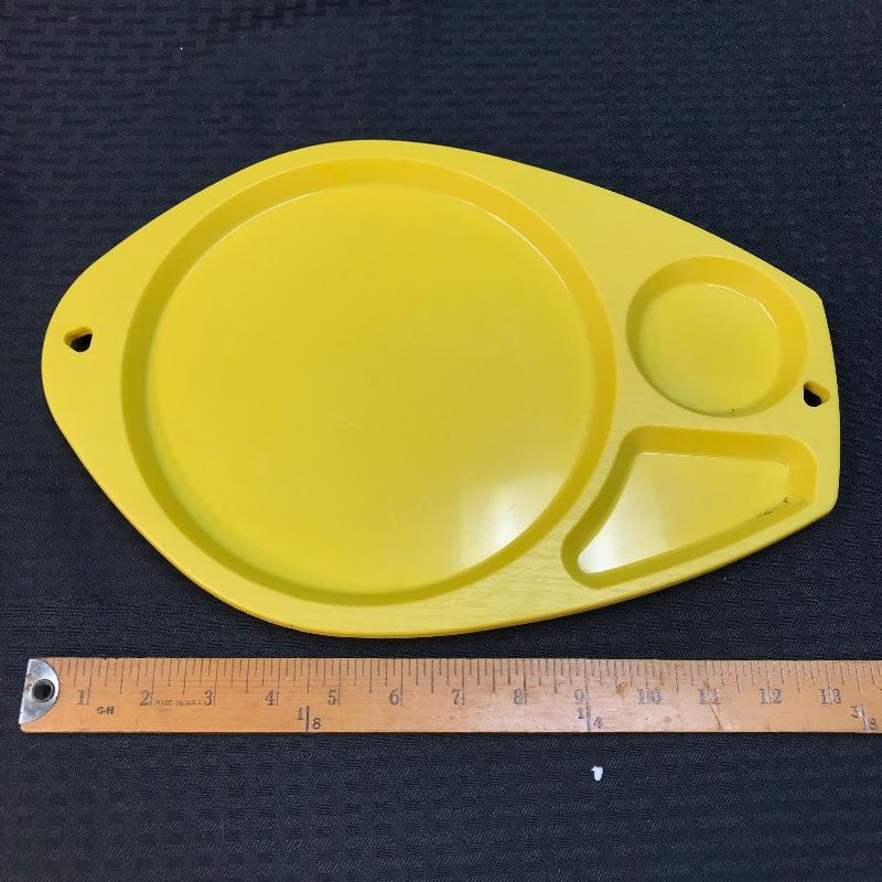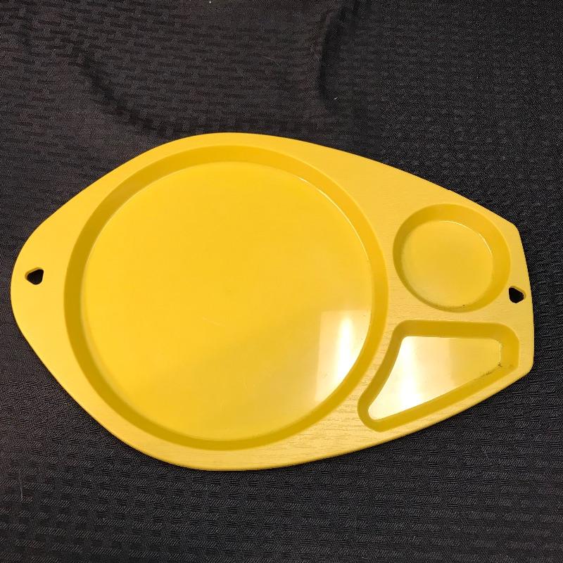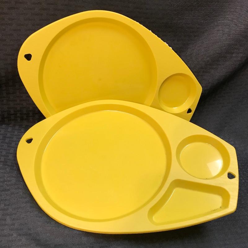 Up for auction are two yellow, vintage plastic serving trays. They are unmarked and in excellent condition; see pictures.