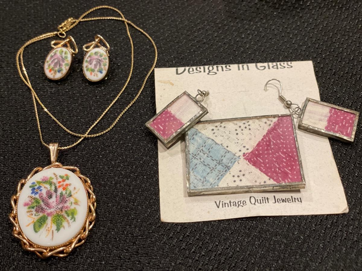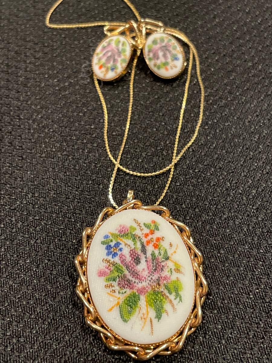 Spiedel clip on earrings and 1;k GF necklace set almost looks like cross stitch