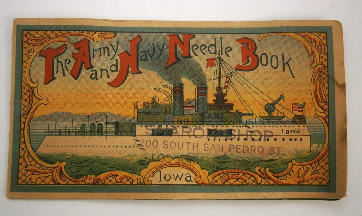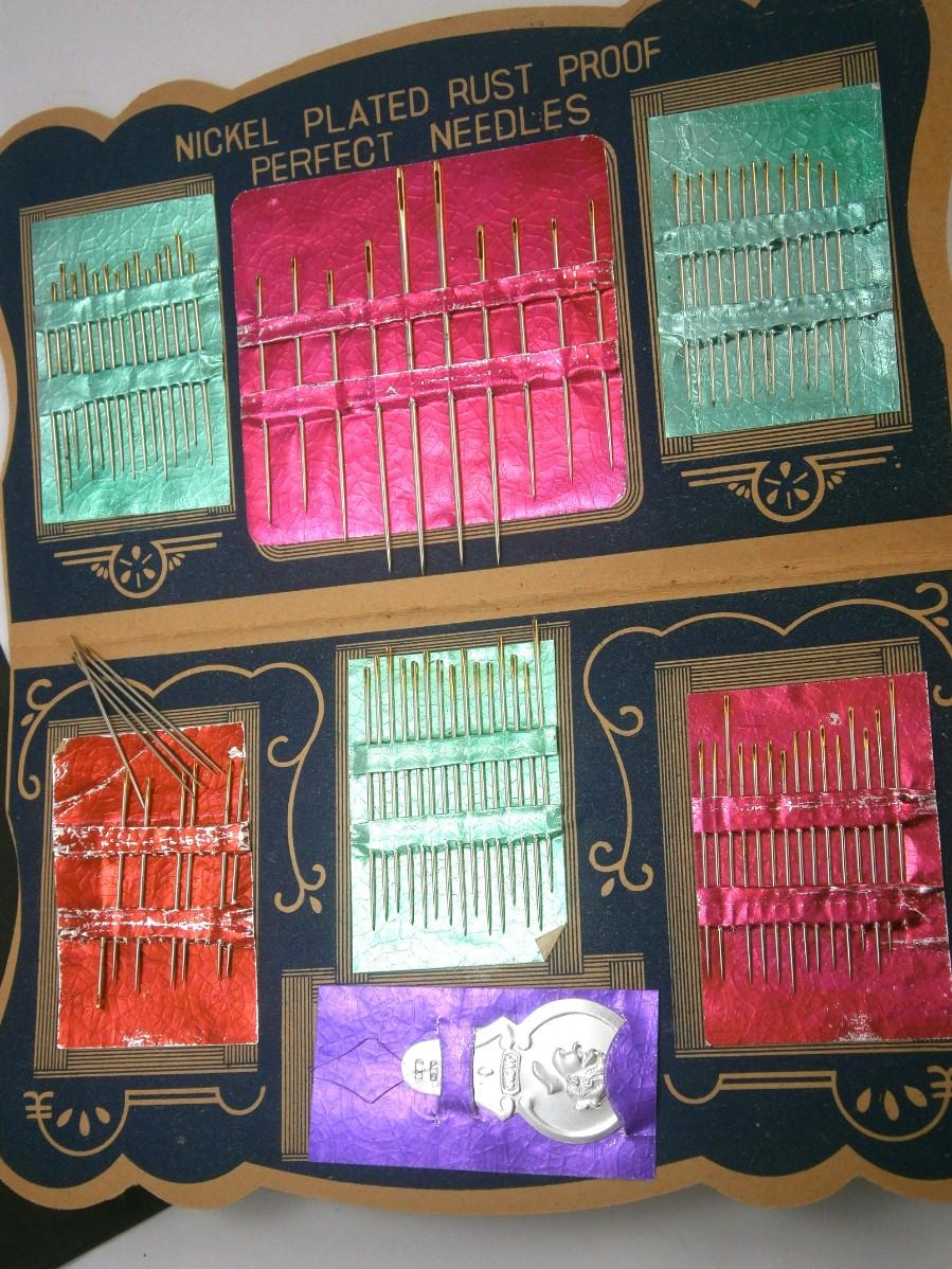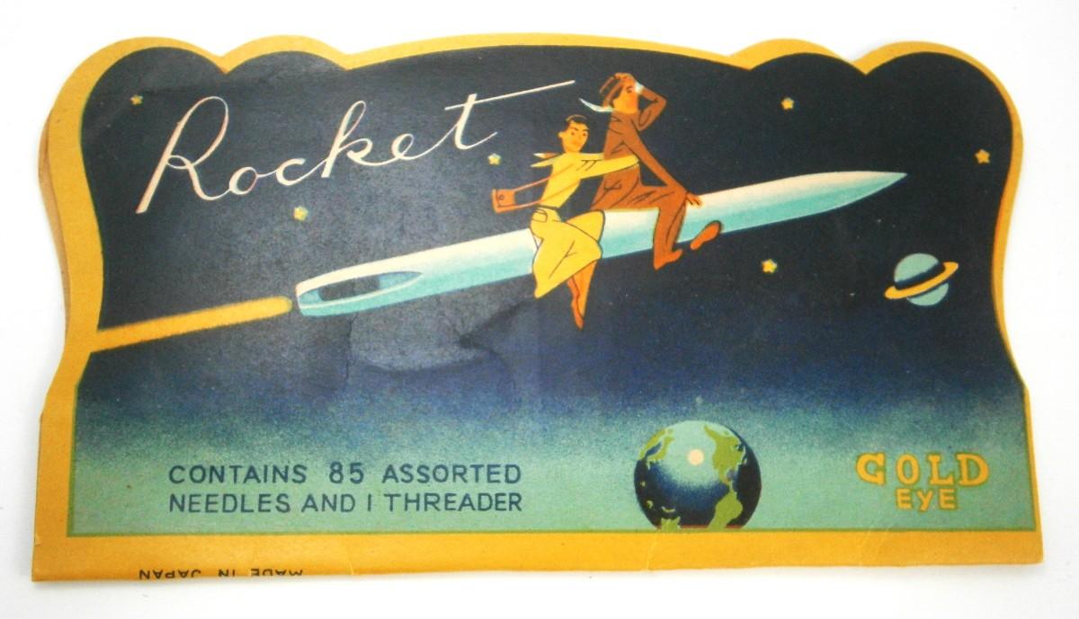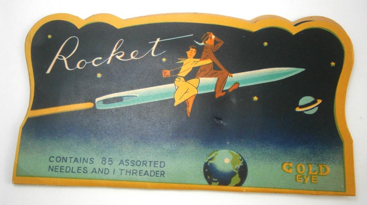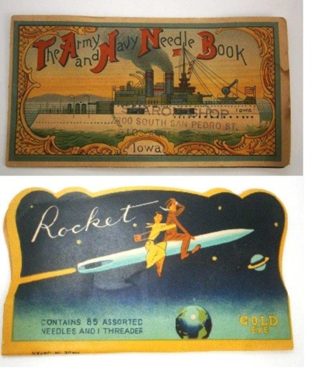 2 Vintage Sewing Needle Folders, Army Navy is 4 3/4 in. wide and is empty (no needles), the Rocket is 6 1/2 in. wide and is complete (still has part of original envelope.