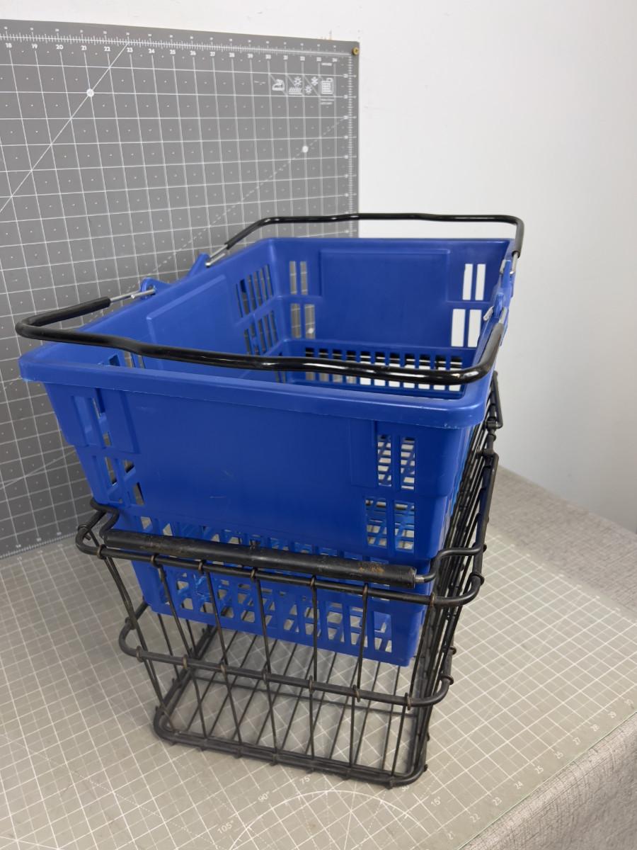 1 Metal and 1 Plastic. Great for the farmers market. Used. Usable.