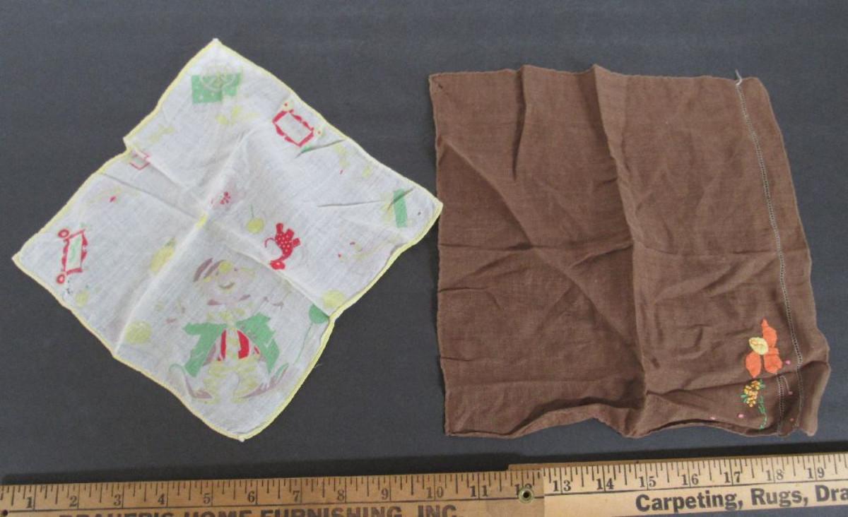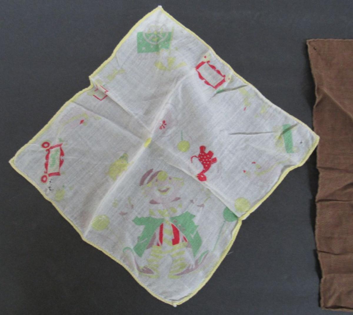 2 Vintage Small Hankies, Child's Clown, Brown With Floral