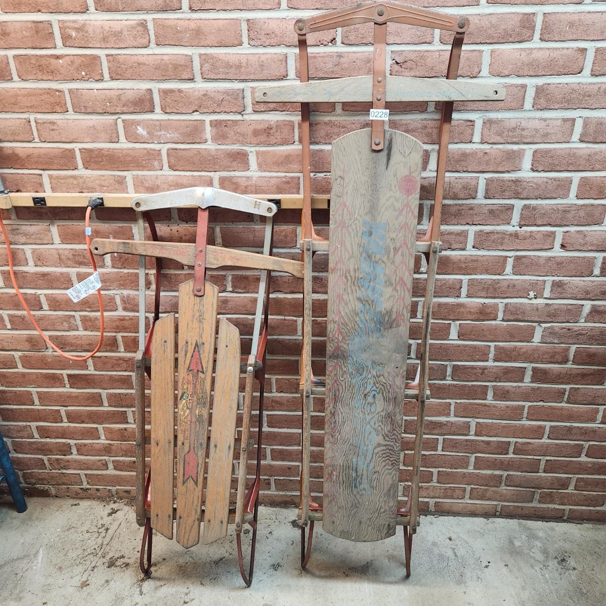 2 Vintage Snow Sleds Flexible Flyer Yankee Clipper Winter Decor