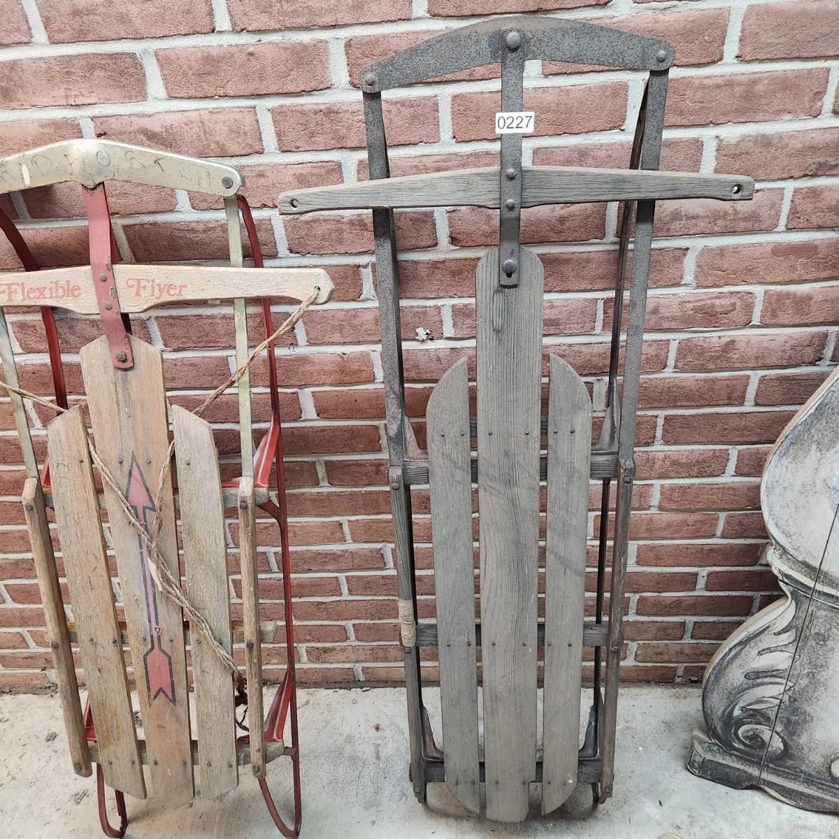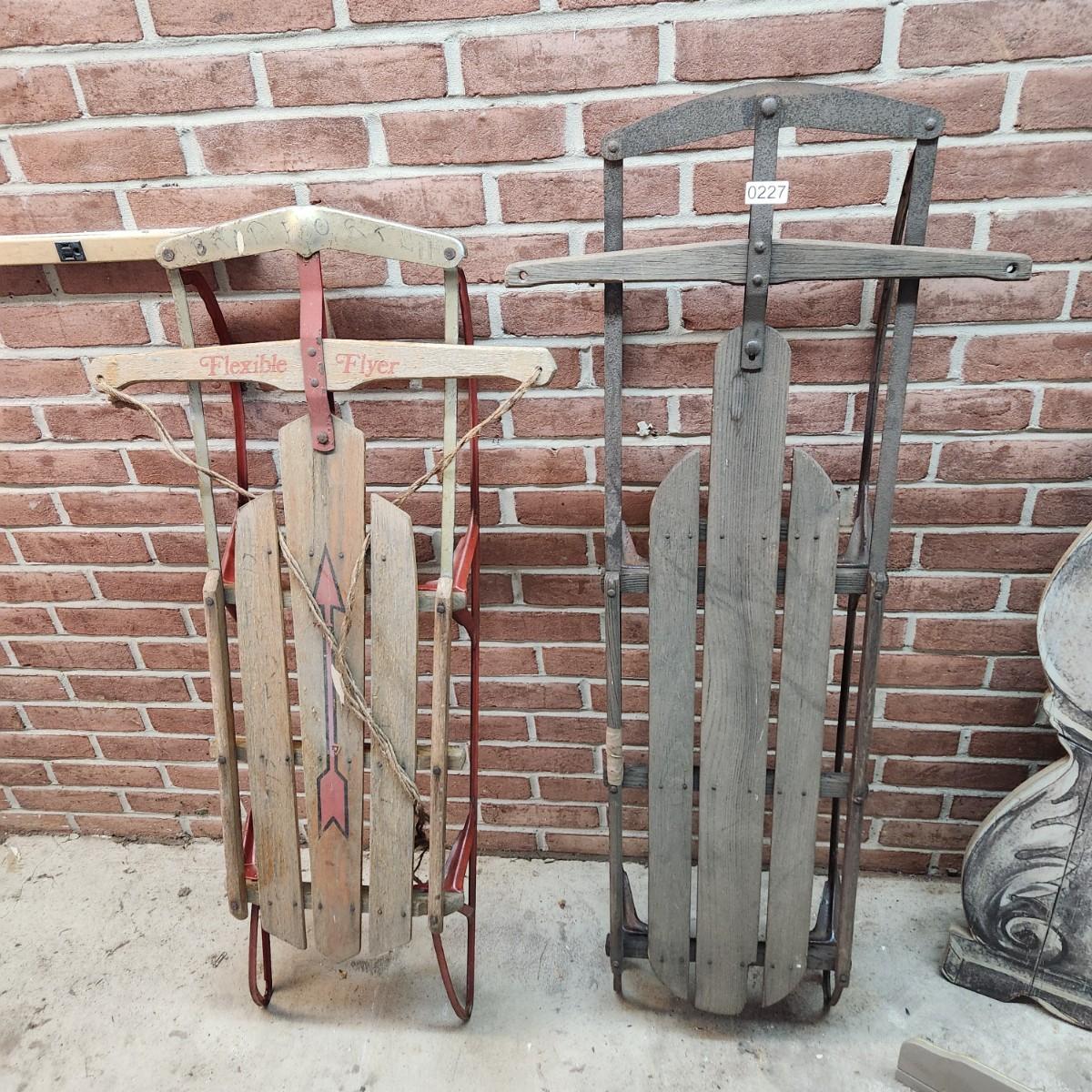 2 Vintage Snow Sleds Winter Decor Flexible Flyer