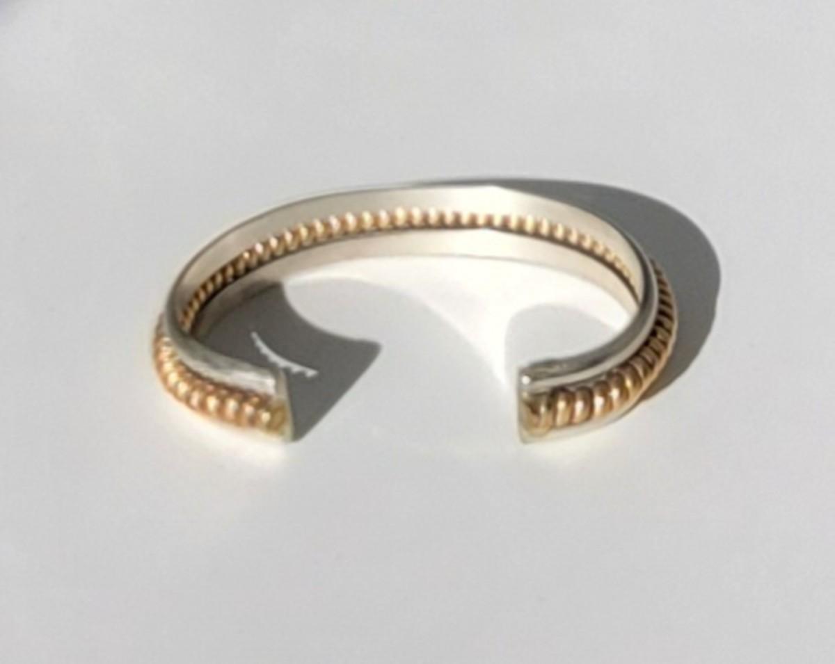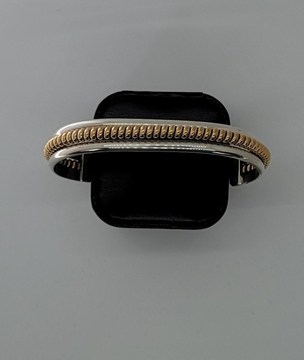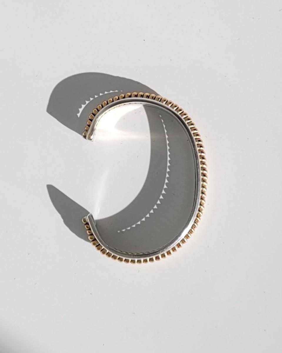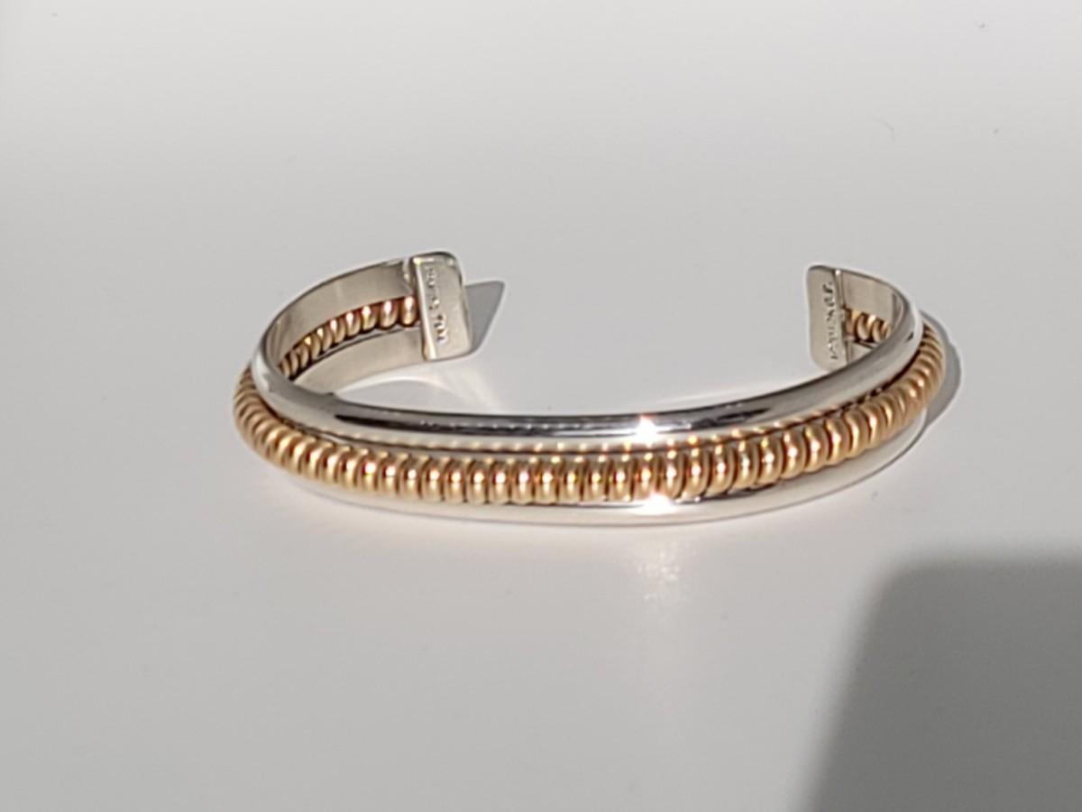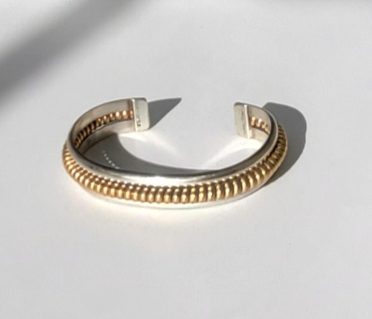 2: Vintage Native American Two Tone Cuff Bracelet Silver: 1/20 12k G.F. (gold fill coil center marked Sterling) Tahe