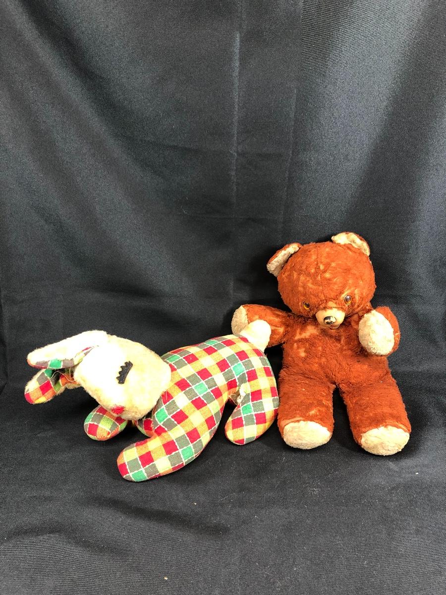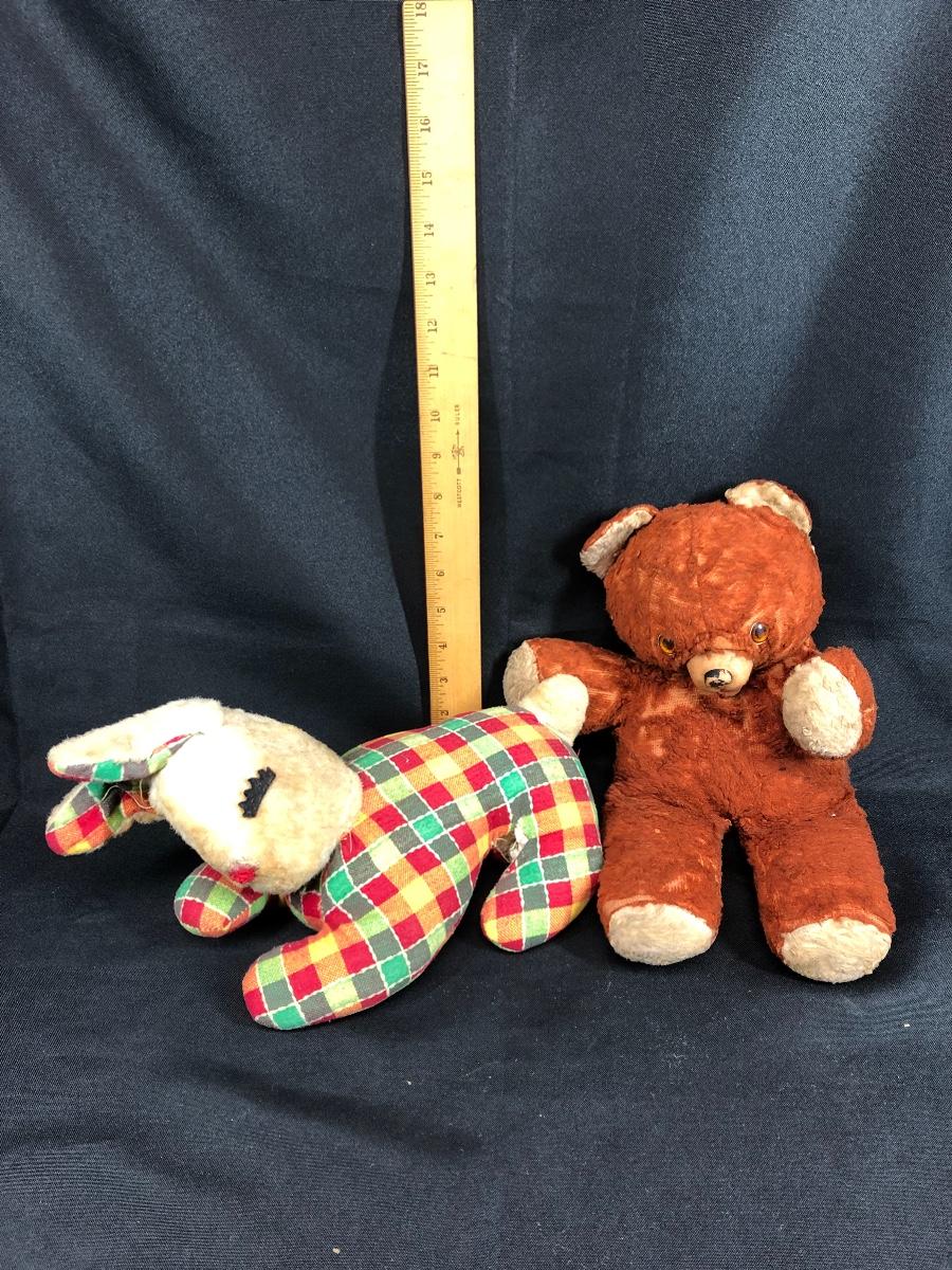 2 vintage stuffed animals bear and rabbit