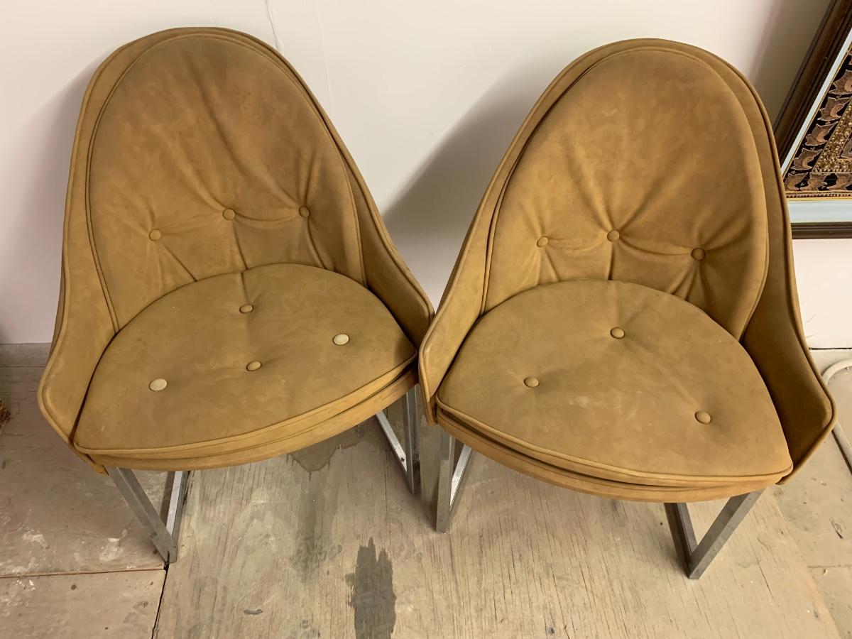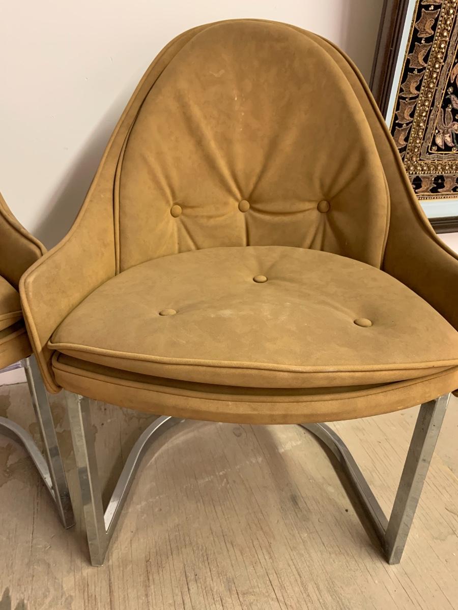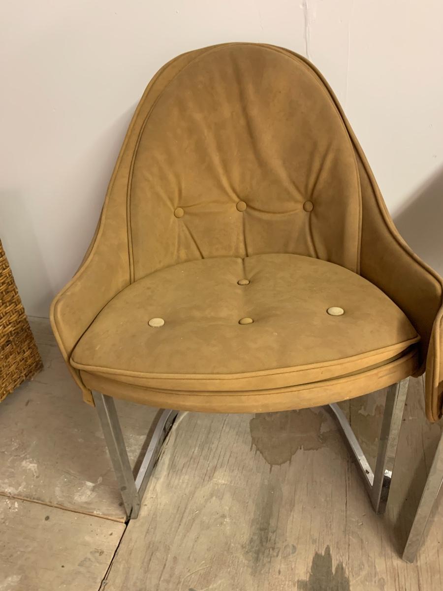 Chrome base, egg shaped suede vintage chairs. Set of 2