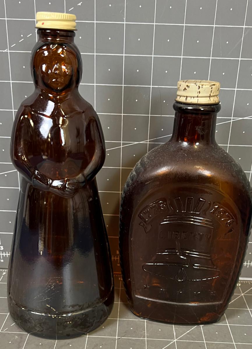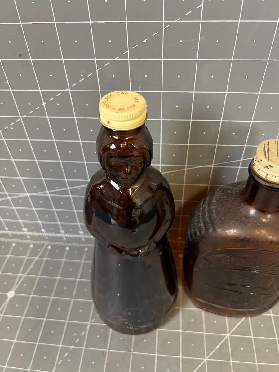 2 Vintage Syrup Bottles: Log Cabin and Aunt Jemima