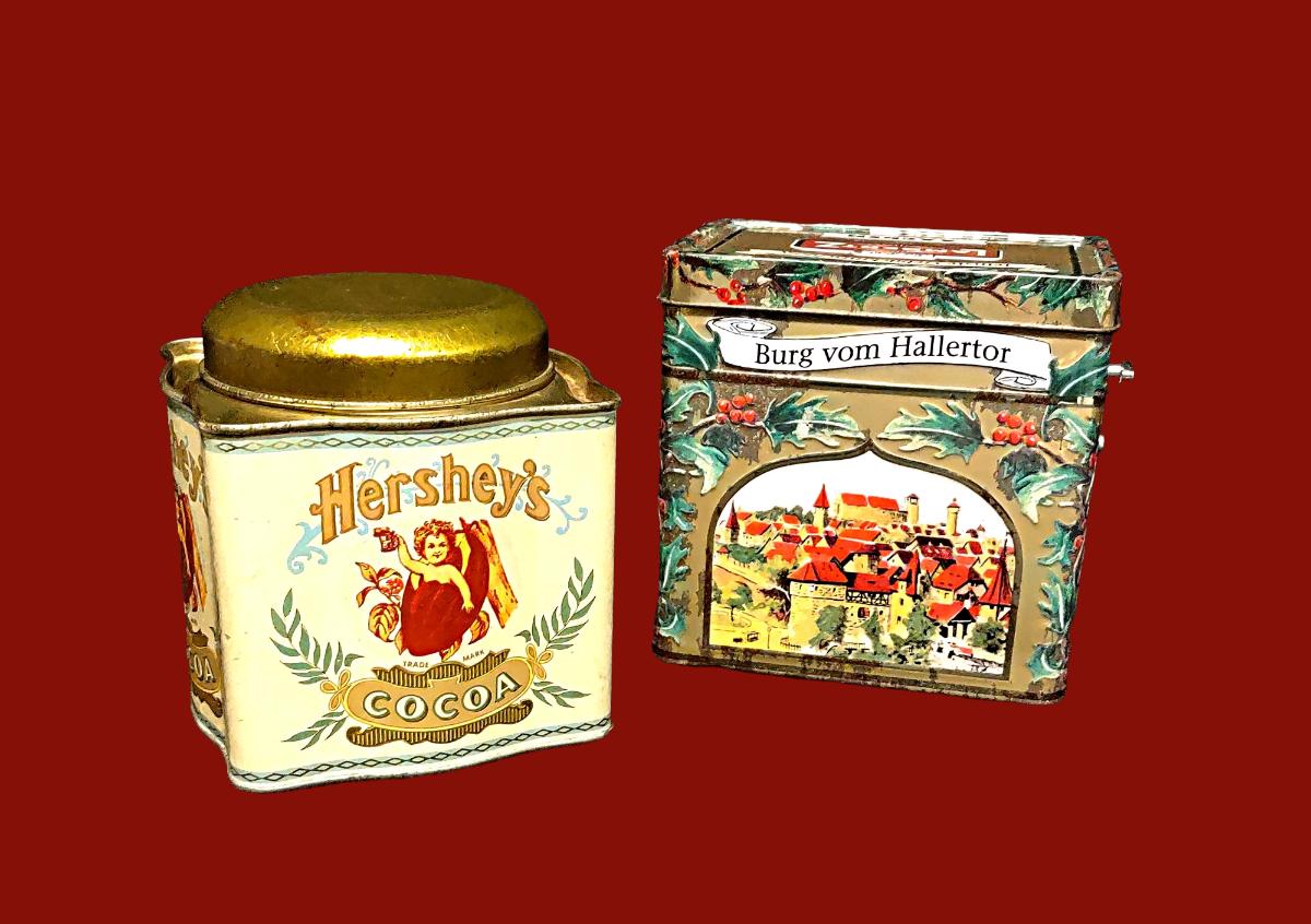 2 Vintage Tins Hershey's Cocoa & Lambertz Musical Tin