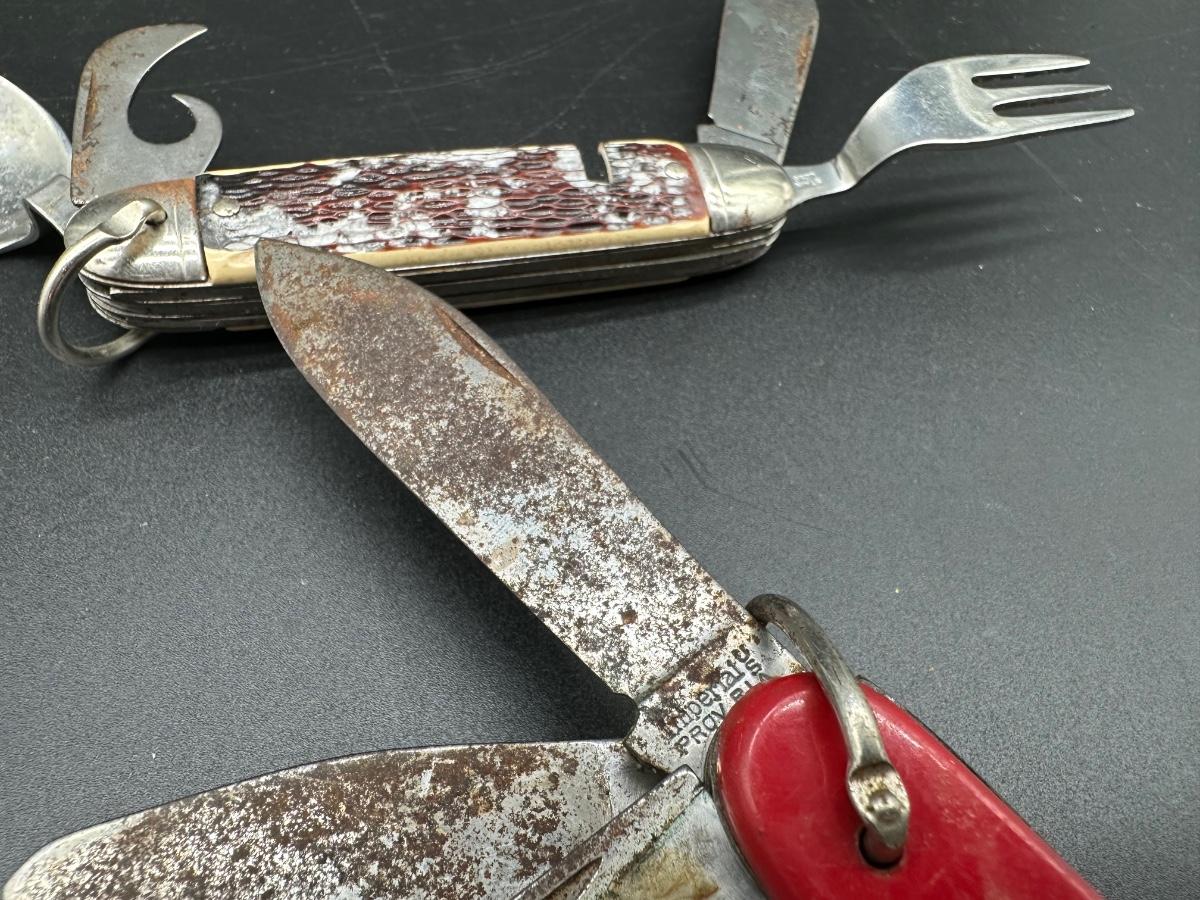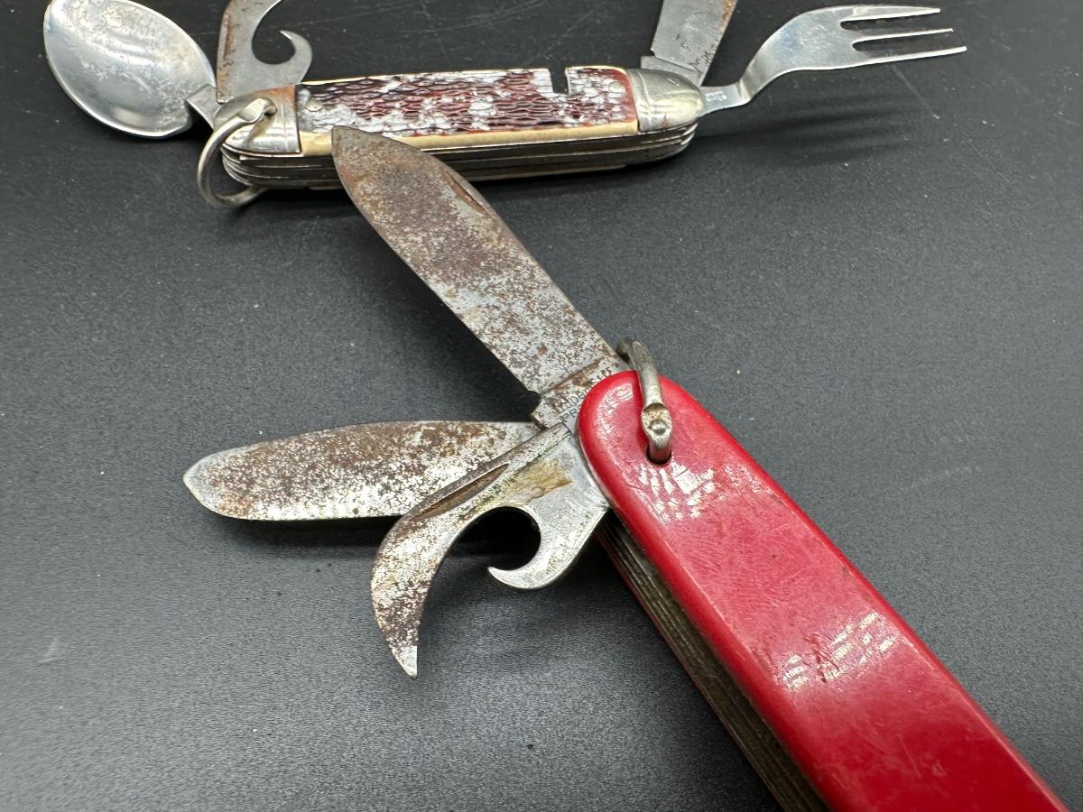 Lot of two vintage American-made camp / scout style utility pocket knives.