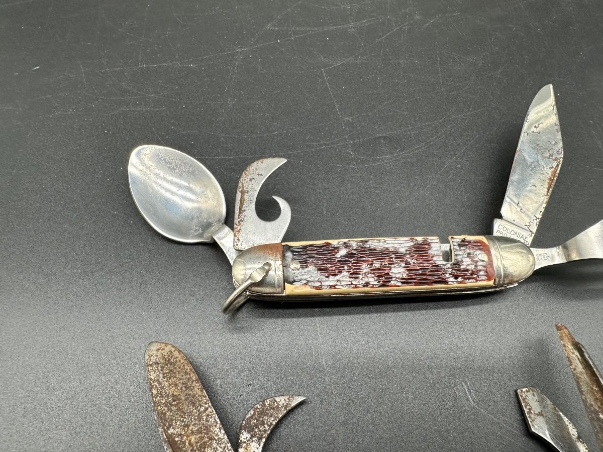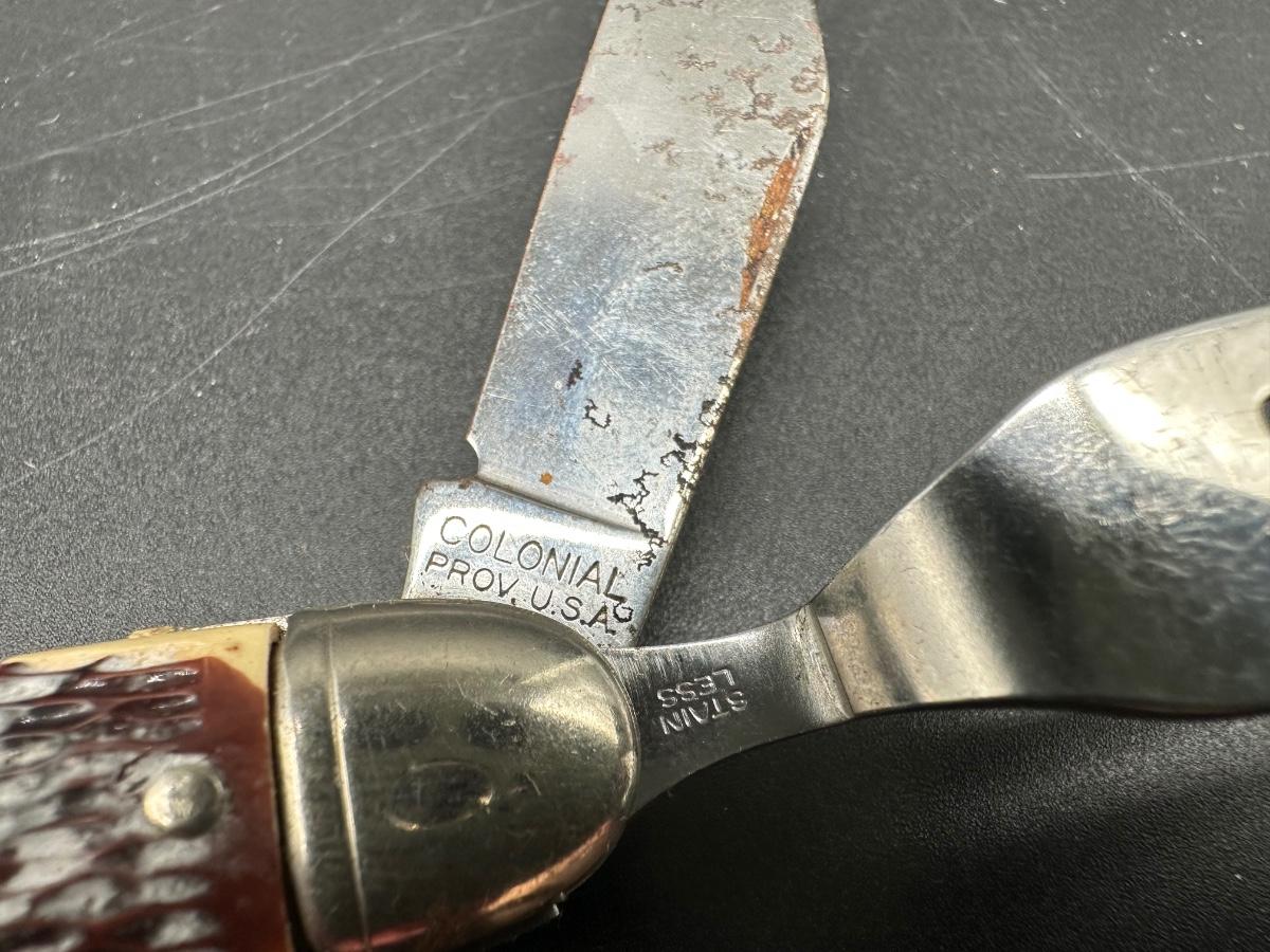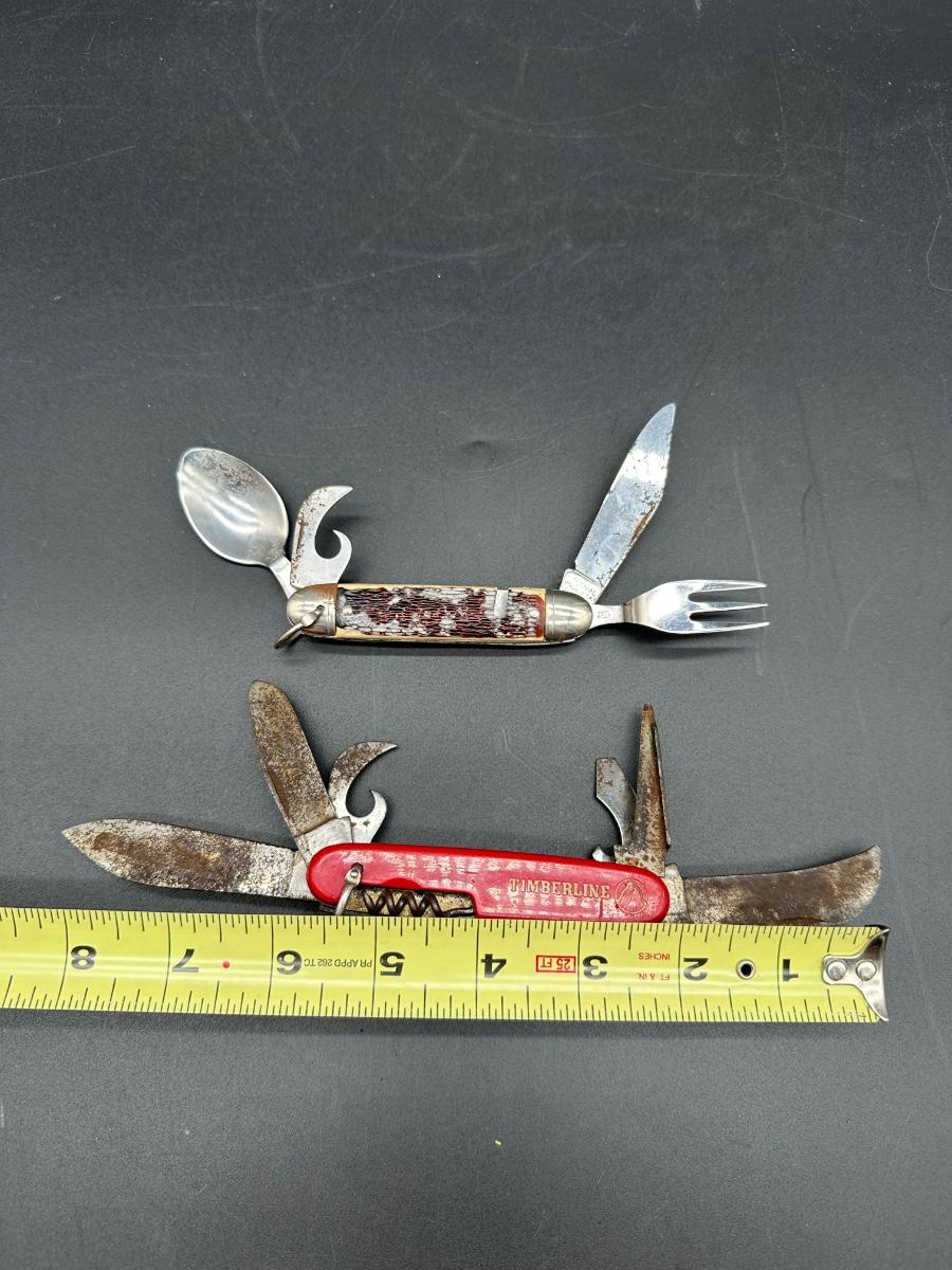 2 Vintage USA Camp Utility Pocket Knives – Colonial Prov. USA & Imperial Timberline – Hobo / Scout Style