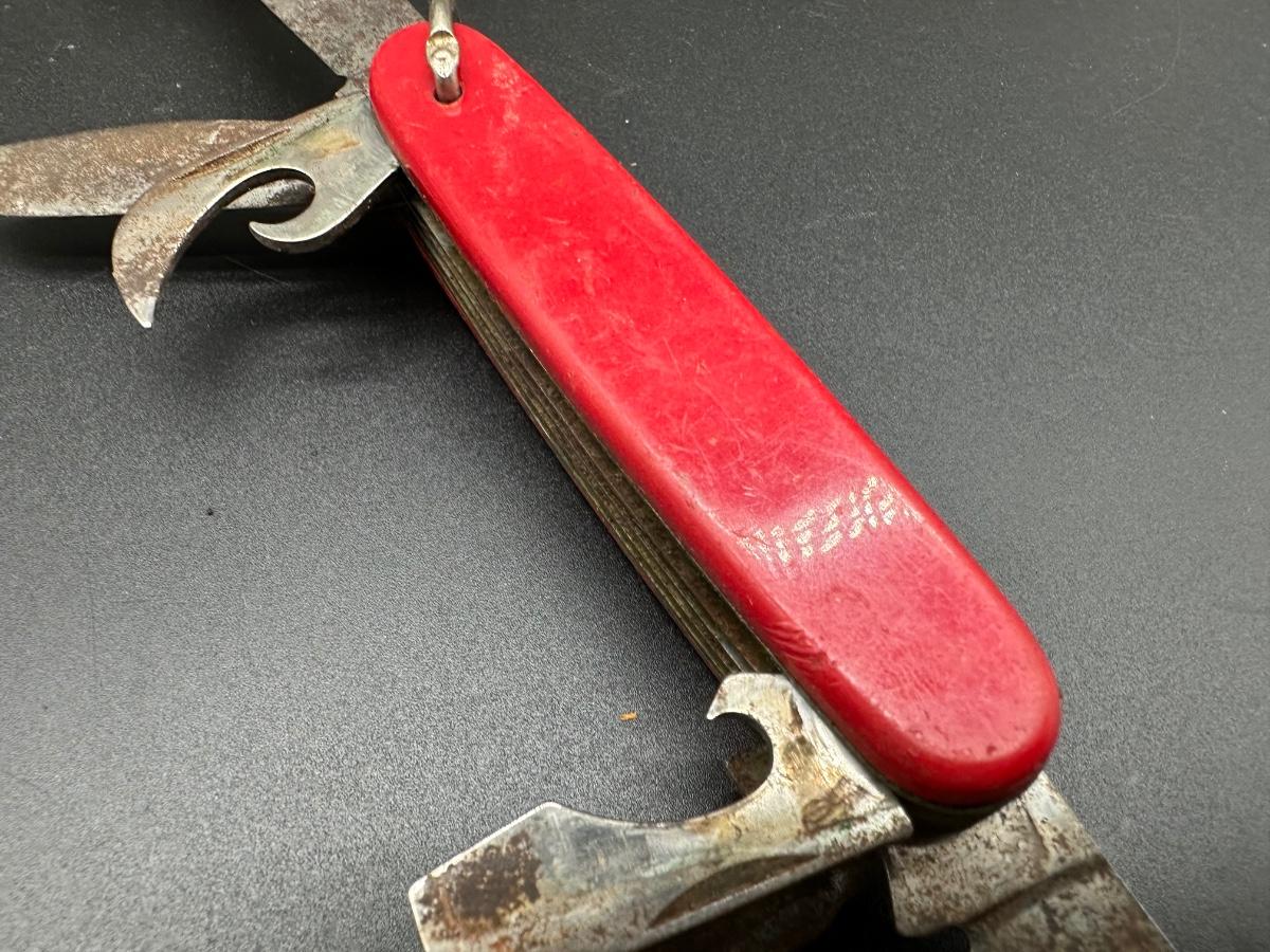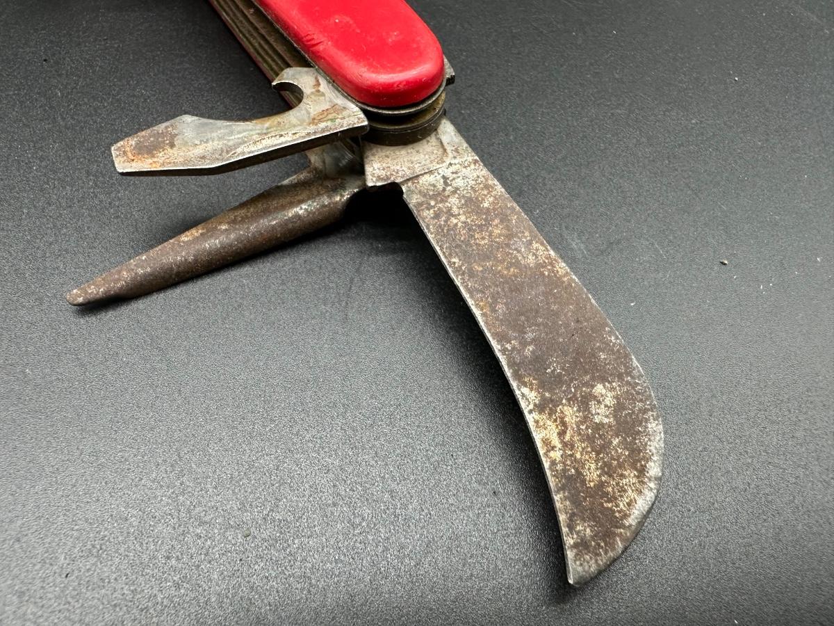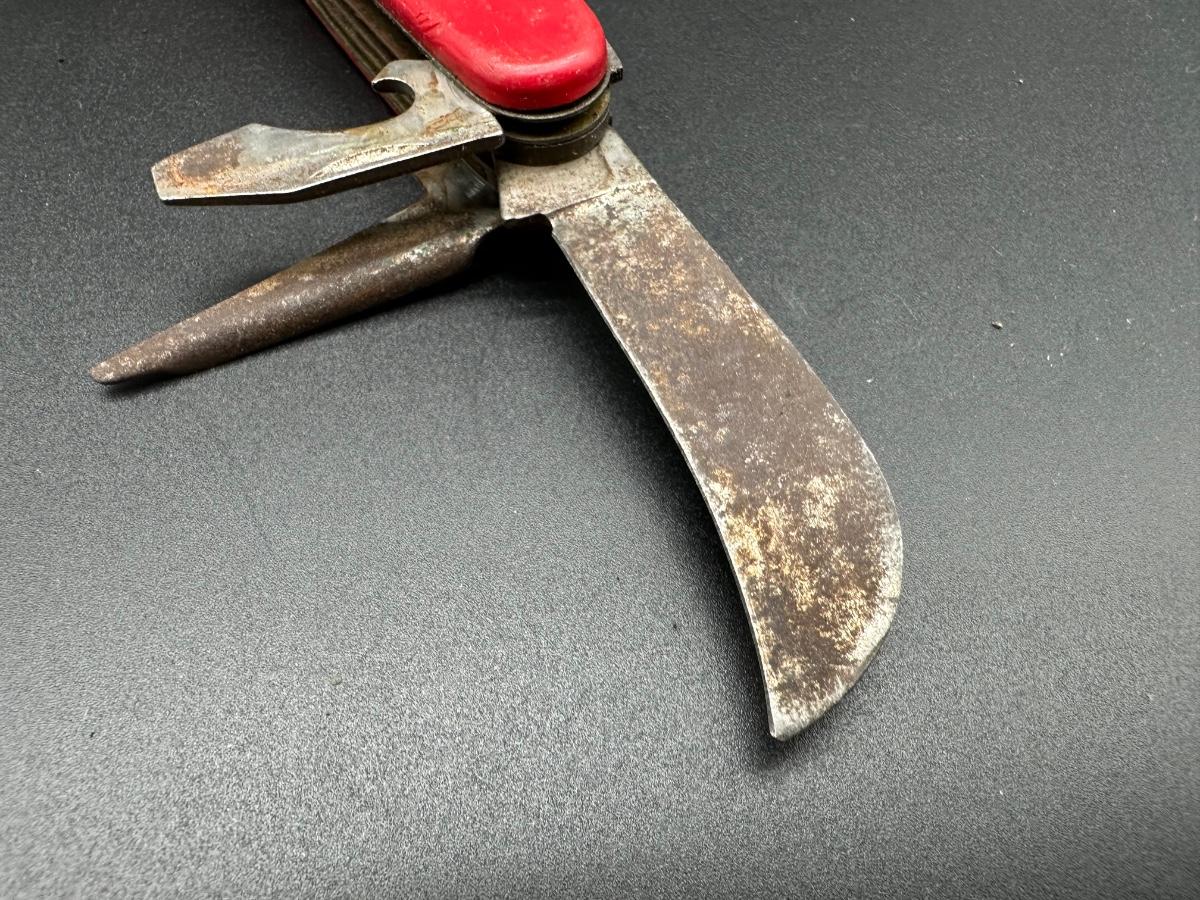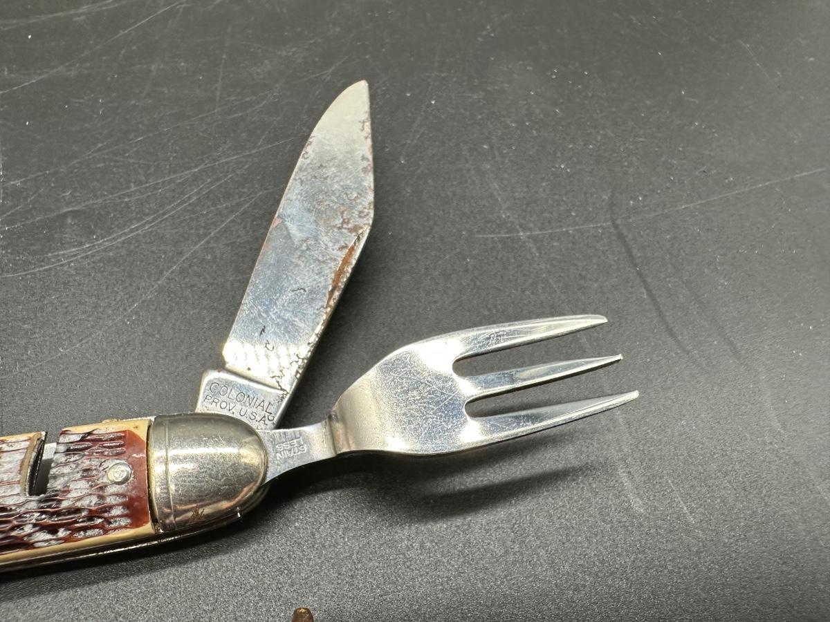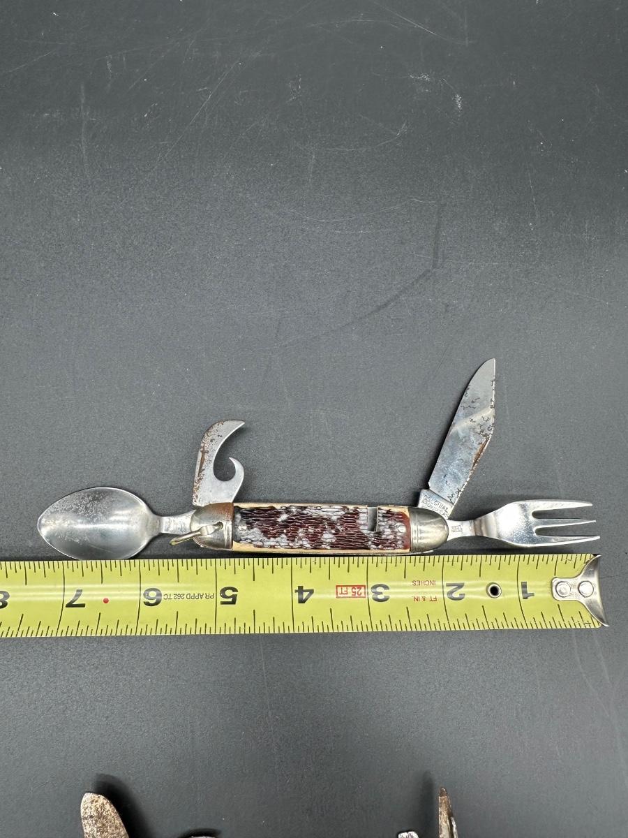 Classic hobo / mess kit style utility knife with integrated eating utensils.