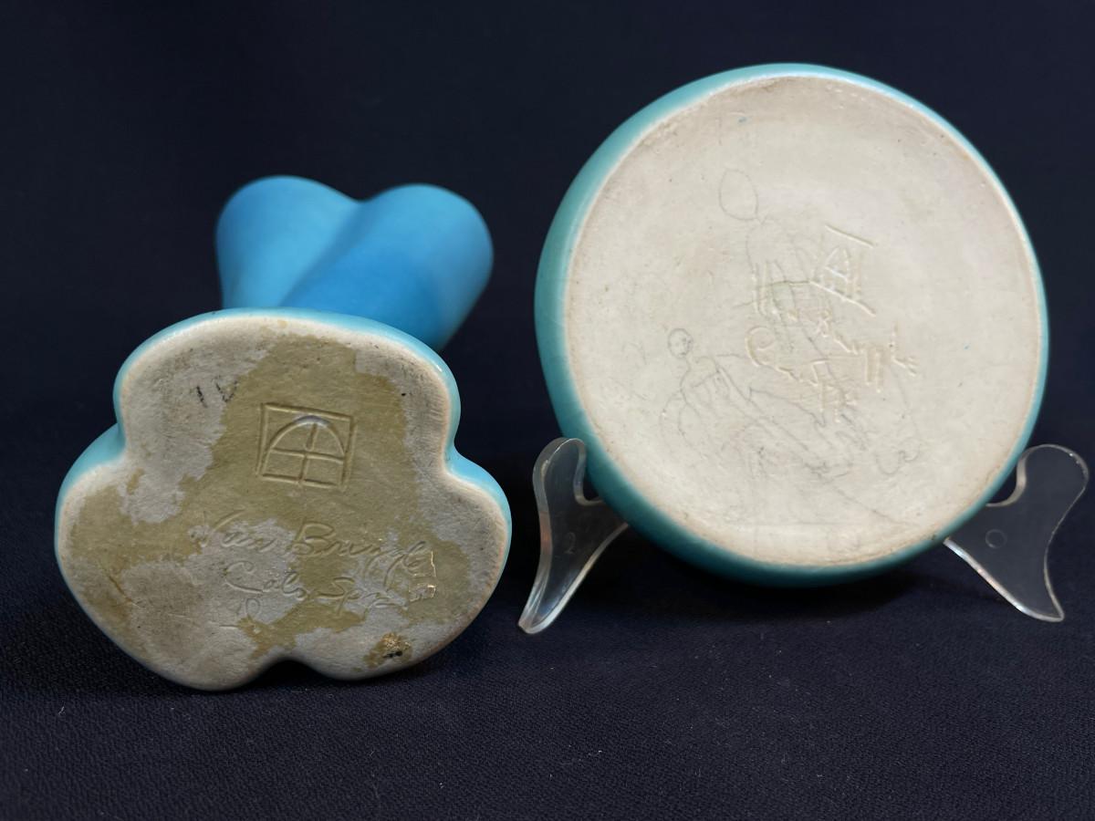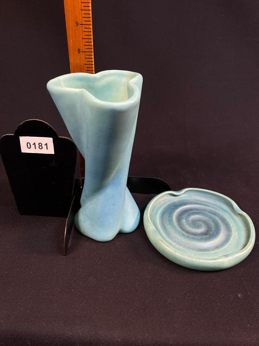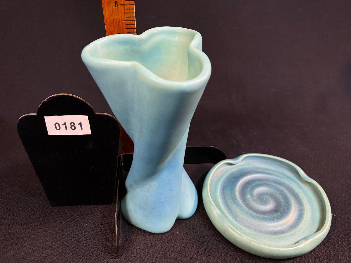 2 Vintage Van Briggle Ming Blue Vase, Ashtray