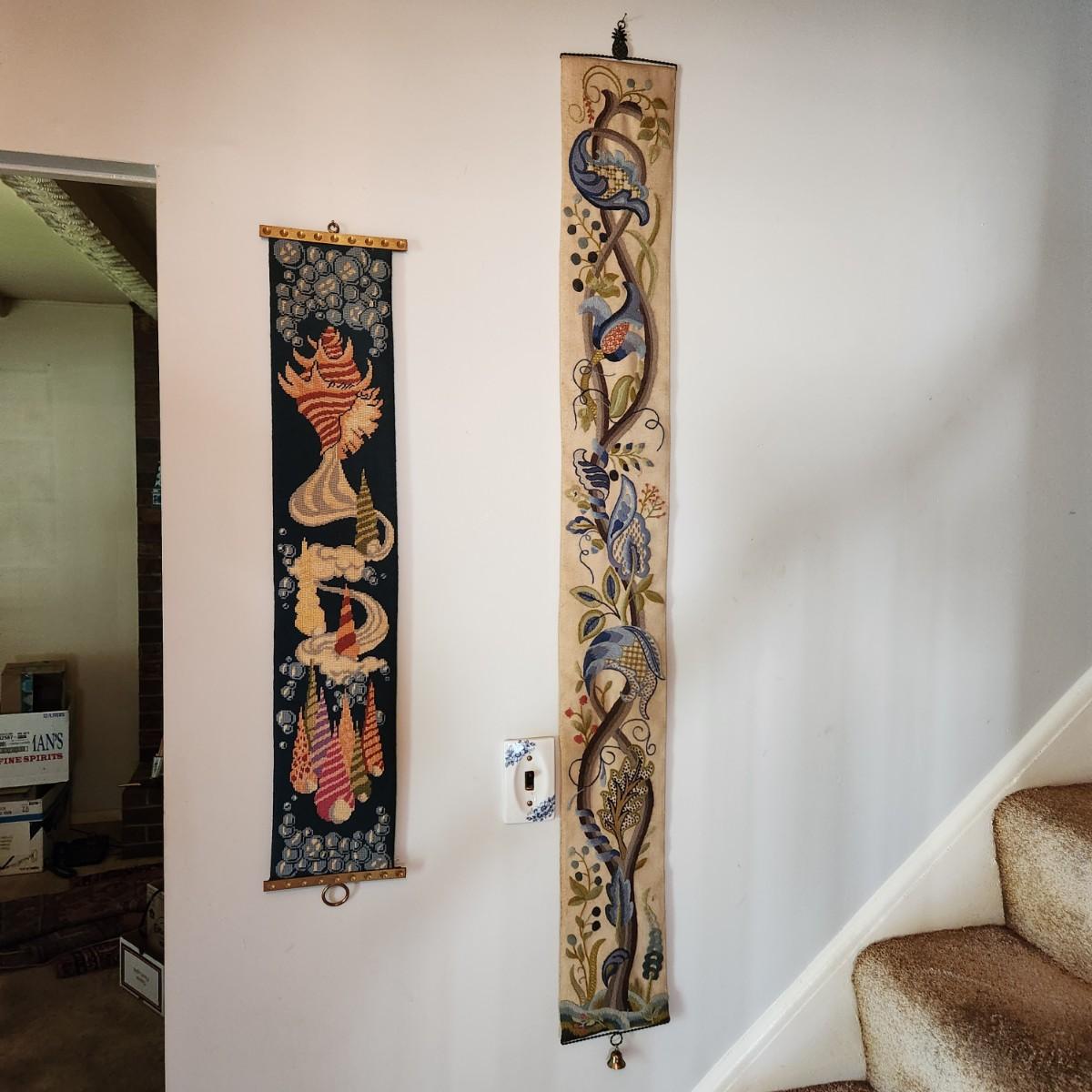 2 Vintage Vertical Bell Pull Tapestry 32" and 53" long