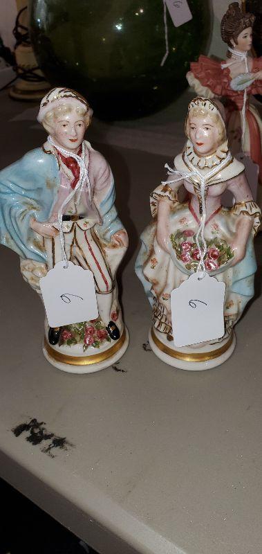 2 Vintage Victorian Colonial Figurines Man Women Signed Sarah Still - Item #302