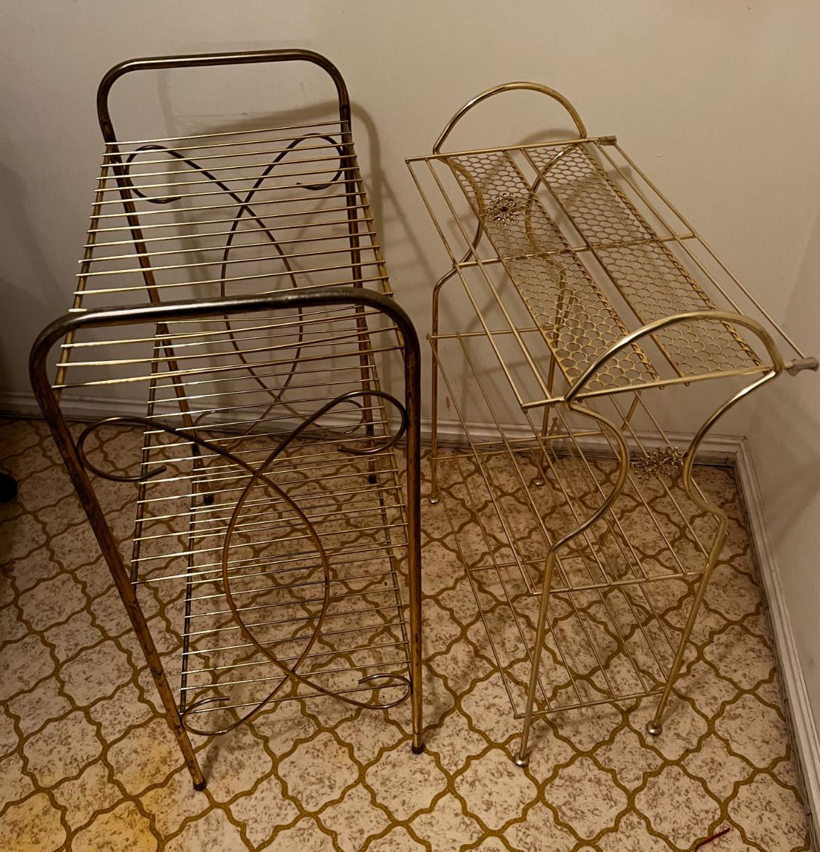 2 Vintage Wire Racks, Gold Tone