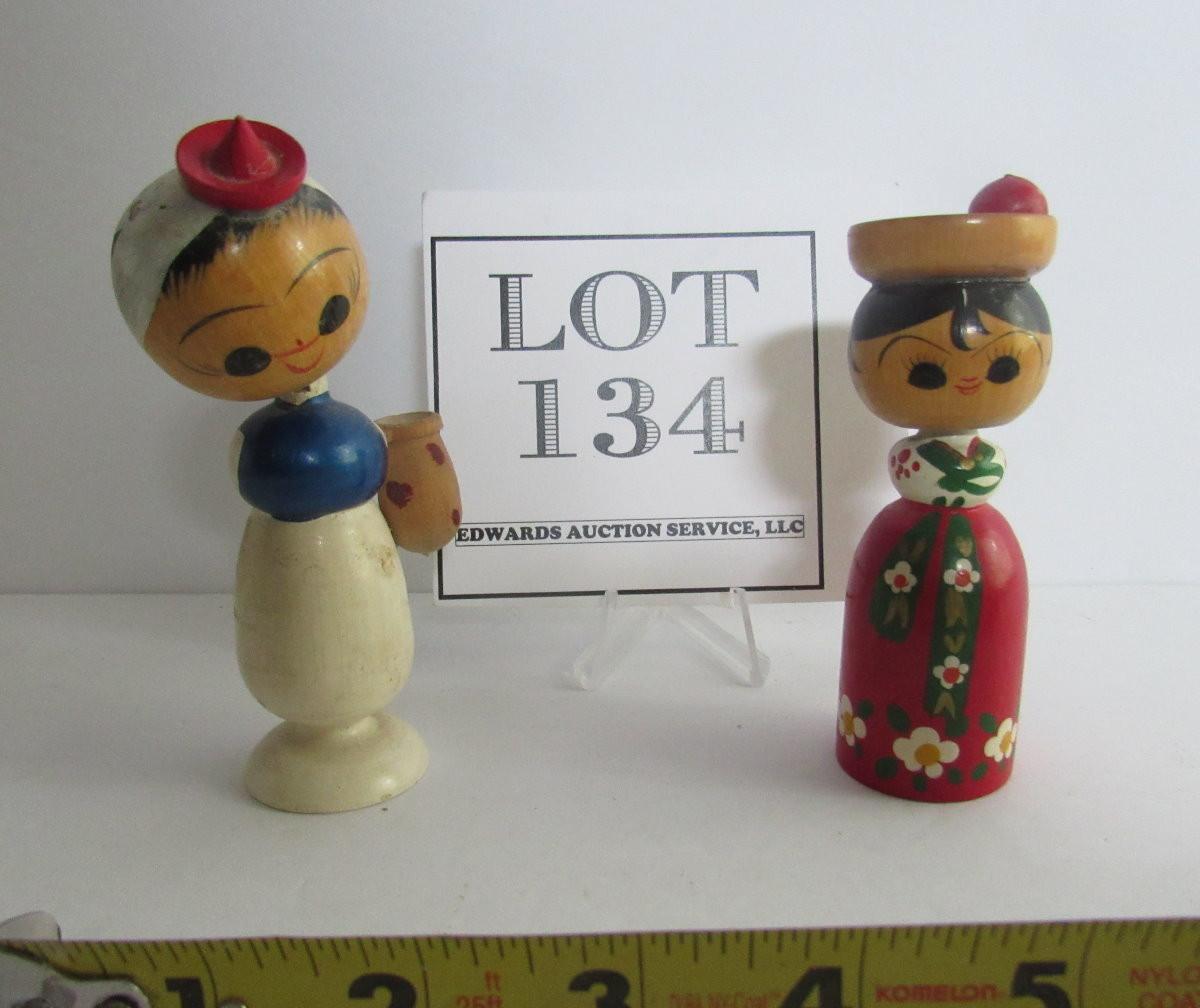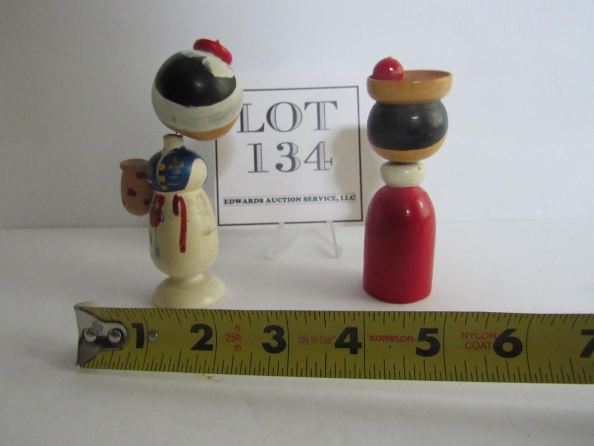Unmarked, exact age unknown. The taller one's spring is a mess, but intact. Shipping is available on this lot with additional shipping and handling fees. See our terms for details.