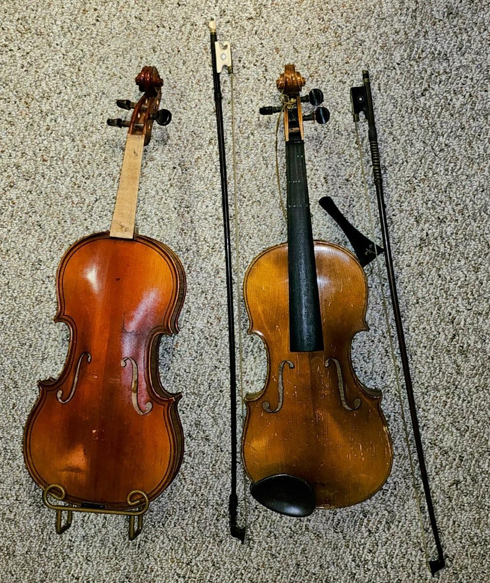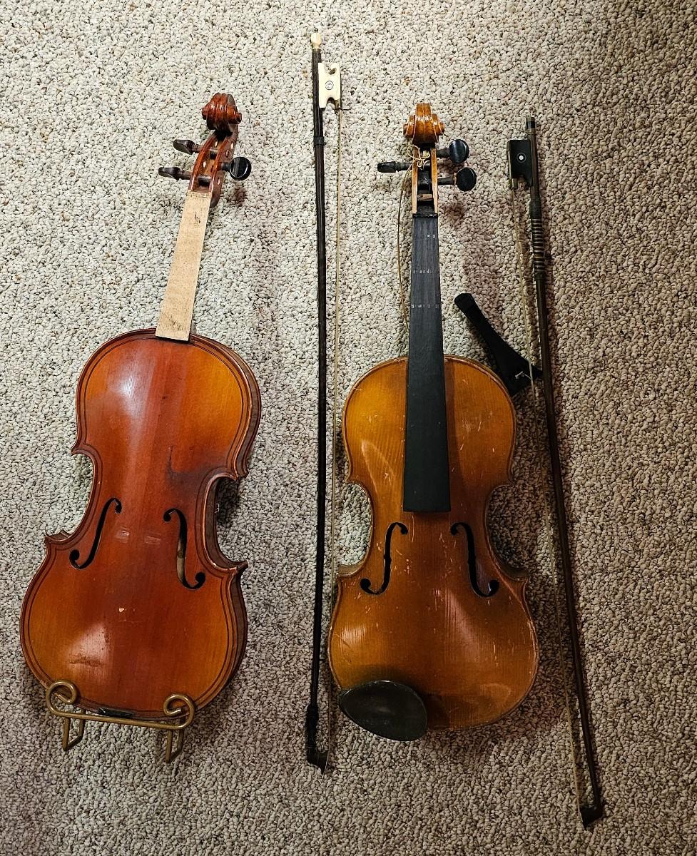 2 violins and bows