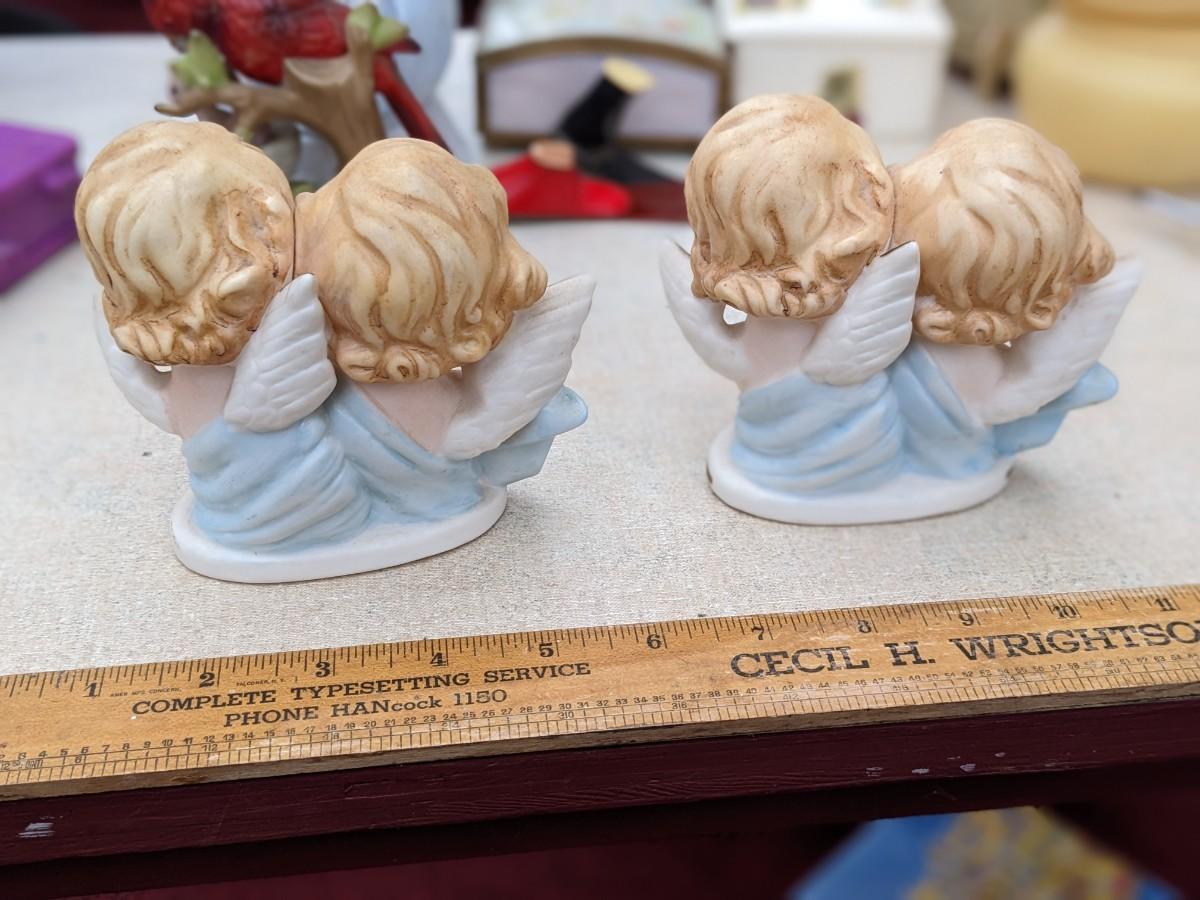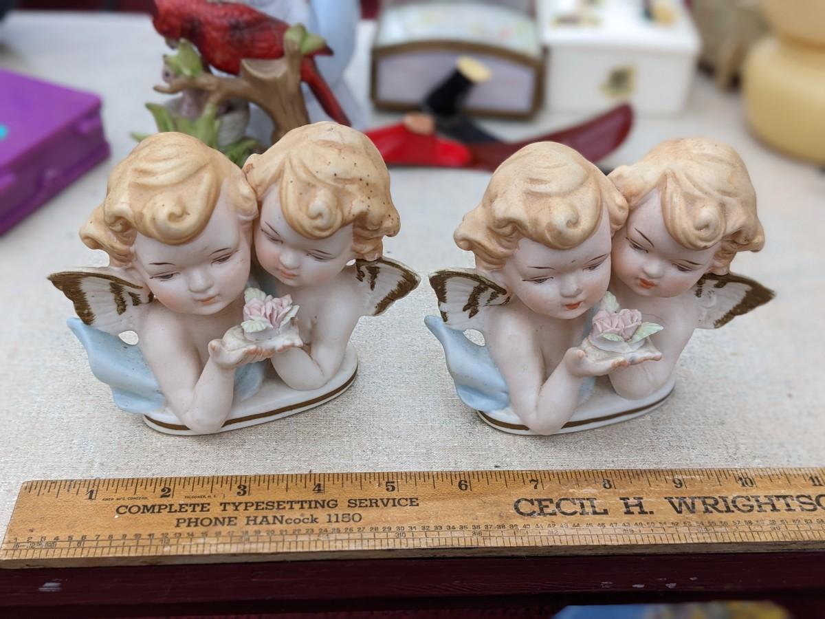 2 Vntg Tilso Angels Japan Pink Flowers Gold Wings