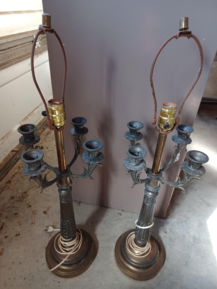2 Vtg Electric Candelabra Lamp with Candle Holders