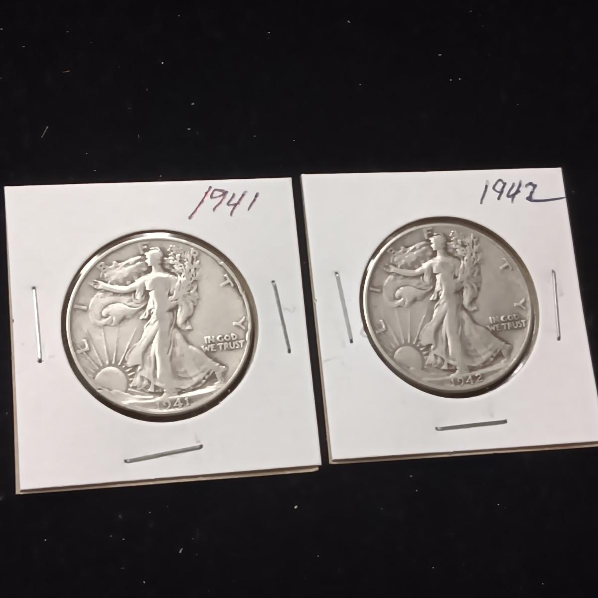 2 WALKING LIBERTY SILVER HALF DOLLARS