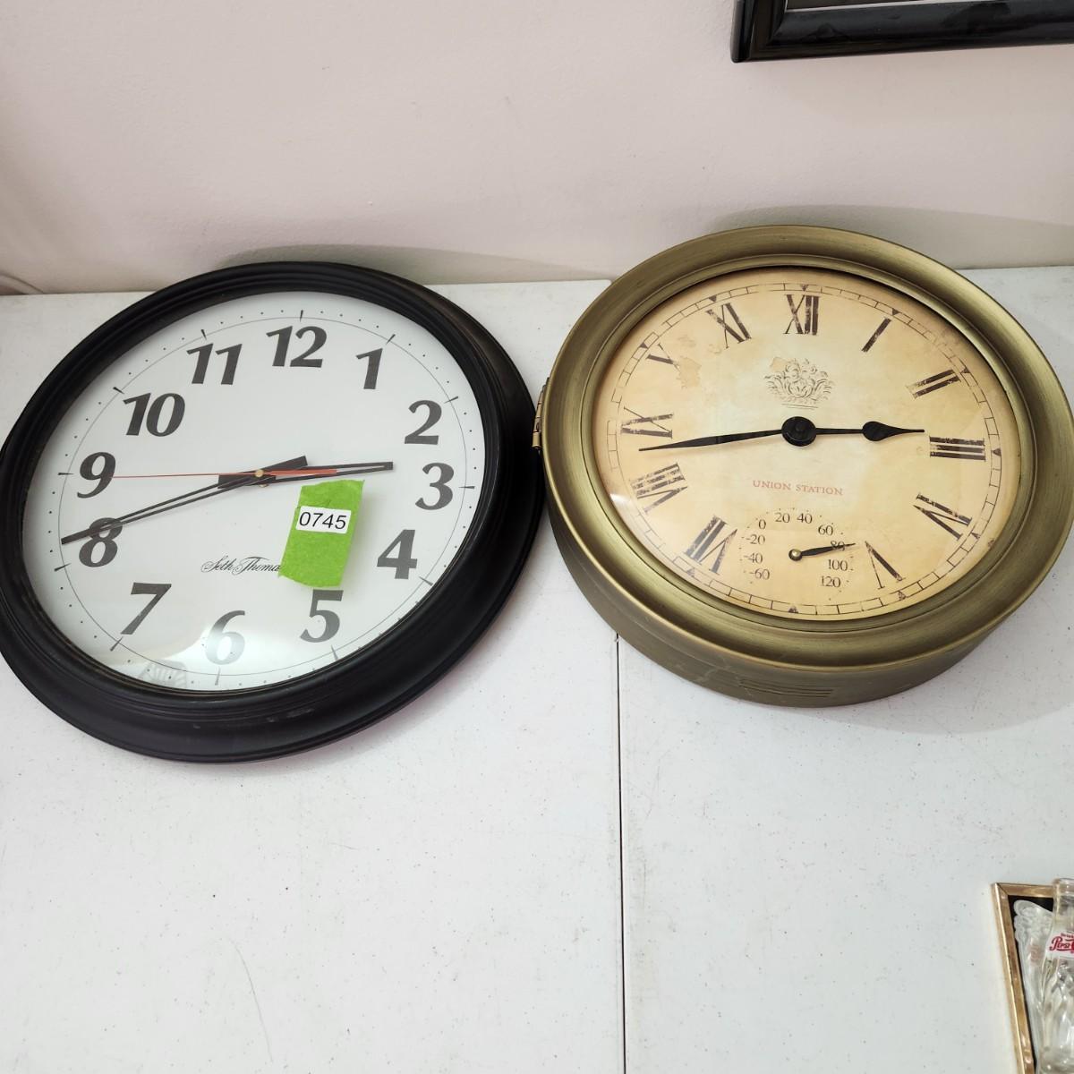 2 Wall Patio Clocks Working 1 is 2 Sided with temperature